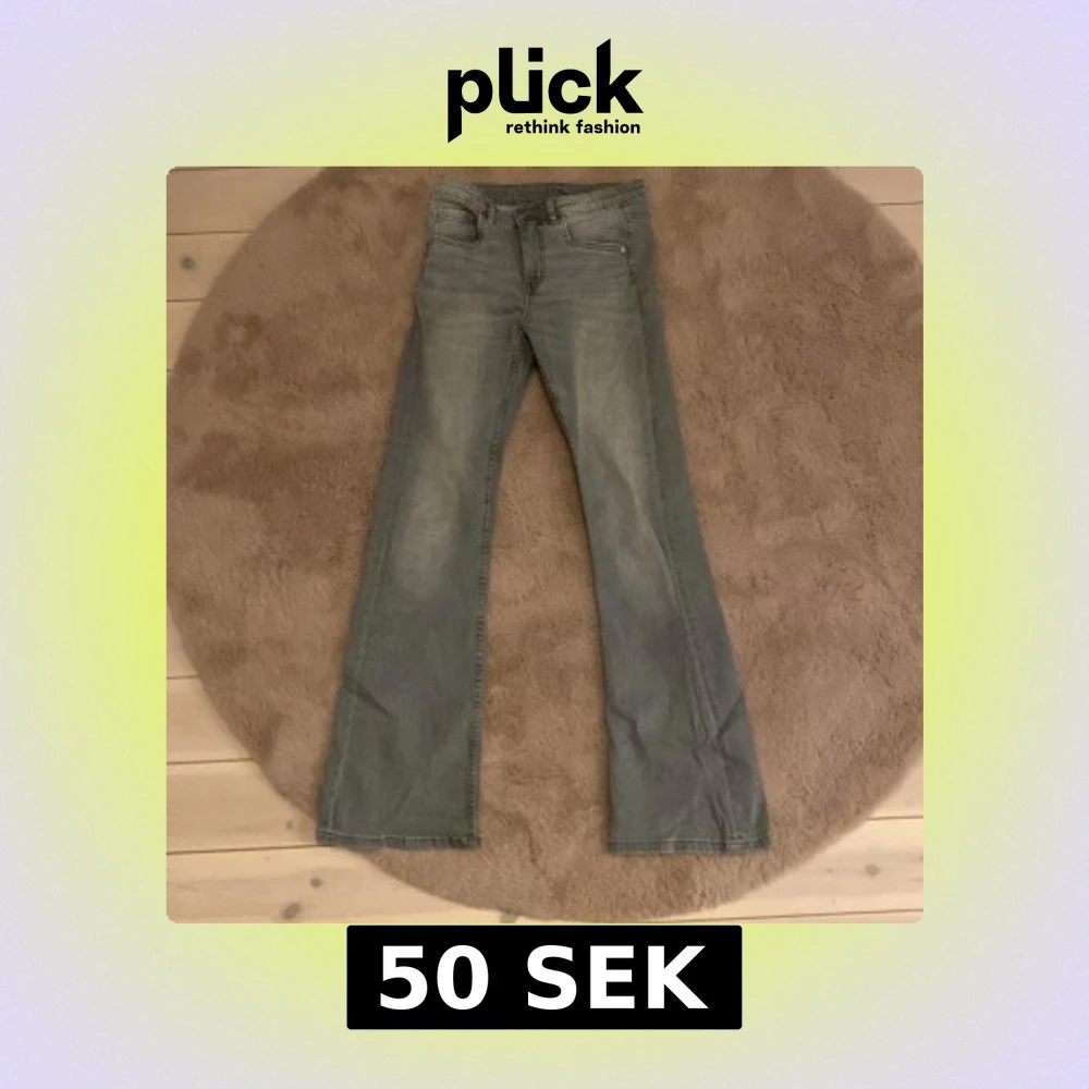 Snygga grå jeans från Kappahl i storlek 152. Modellen har klassisk femficksdesign, raka ben med bootcut och subtila slitningar framtill. Jeansen är tillverkade i mjukt bomullsmaterial med lite stretch för extra komfort. Perfekt för dig som gillar en avslappnad och trendig look.