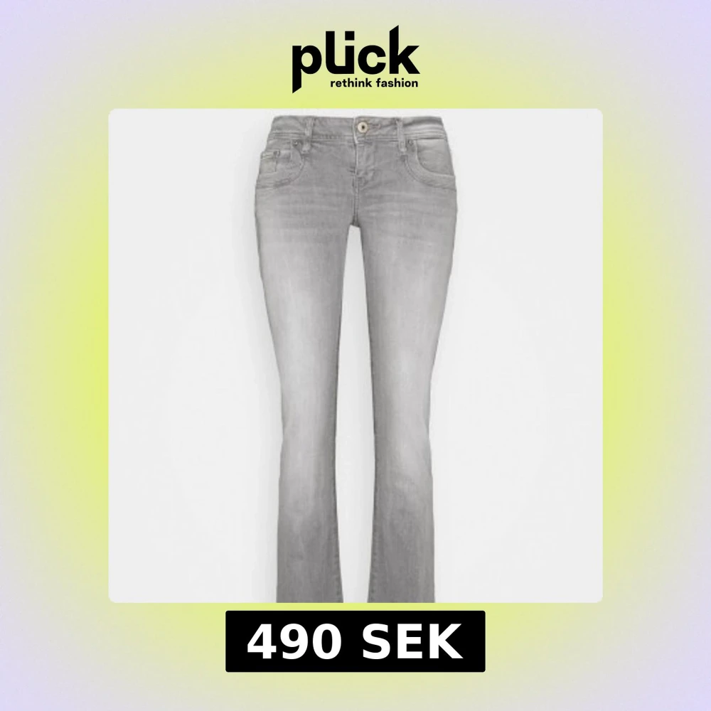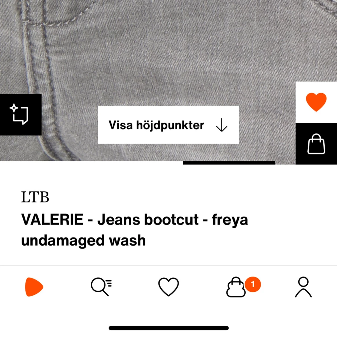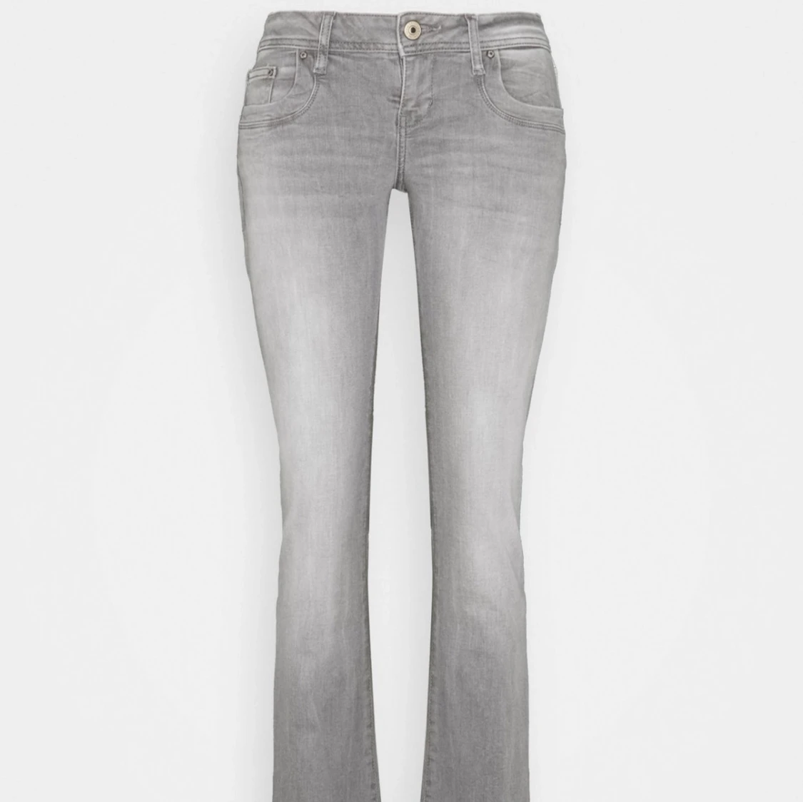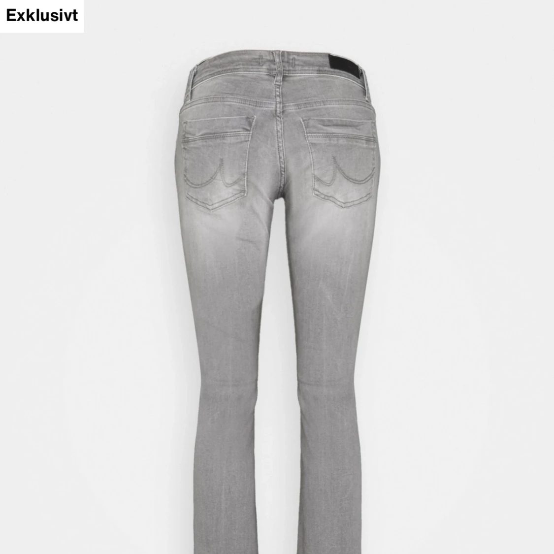 Snygga grå bootcut jeans från LTB i modellen Valerie. De har en klassisk femficksdesign och en knappgylf. Perfekta för en stilren look. Säljer då dem var lite stora i storleken!