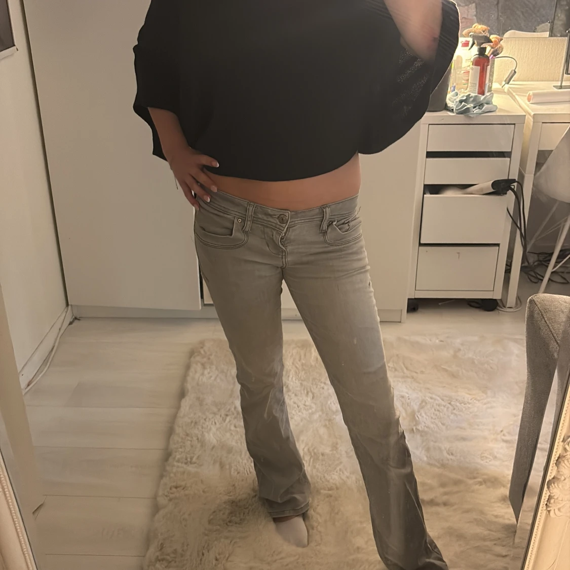 Snygga grå jeans från LTB Blue Addict med bootcut passform och låg midja. Sitter väldigt bra på mig som är 162 och storleken är 25/30 💕💕