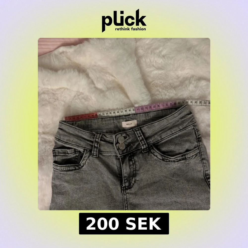 Säljer snygga gråa bootcut jeans från Nelly med klassiska femficksdetaljer och dubbla knappar i midjan. Jeansen har bakfickor med broderad detalj och är tillverkad i denim med en cool tvättad look. Dem är i storlek 36 men uppsydda så den passar än med 73cm innerbenslängd