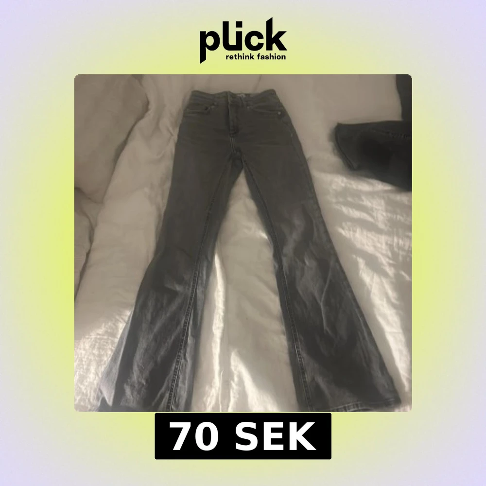 Snygga grå jeans från ONLY i bootcut-modell med hög midja. Jeansen har klassisk femficksdesign och raka ben som släpper ut nertill. Tillverkade i mjukt denimtyg som ger en skön passform och cool vibe.