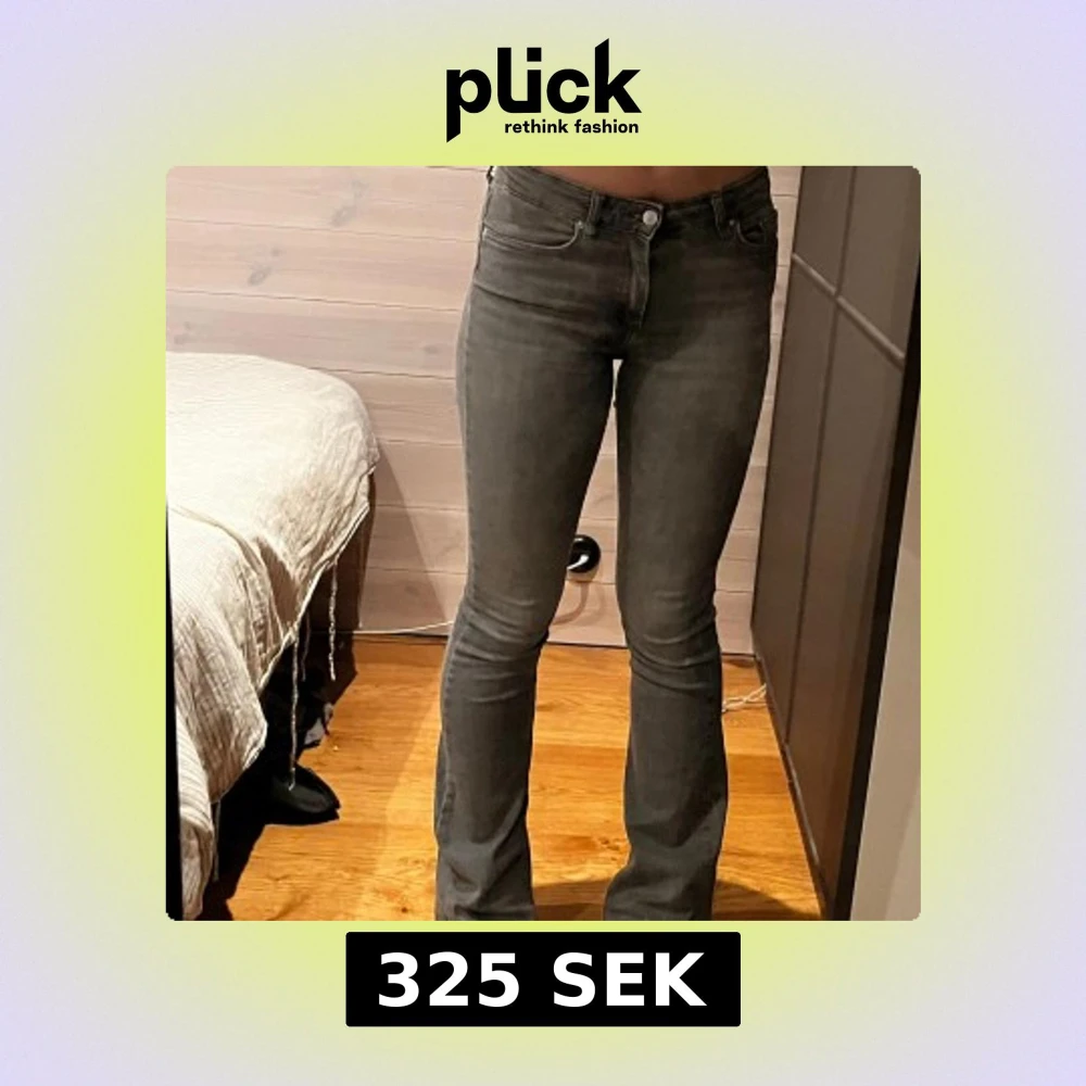 Snygga grå bootcut jeans med hög midja. De har en klassisk femficksdesign och en knappgylf. Perfekta för en stilren look.❤️❤️