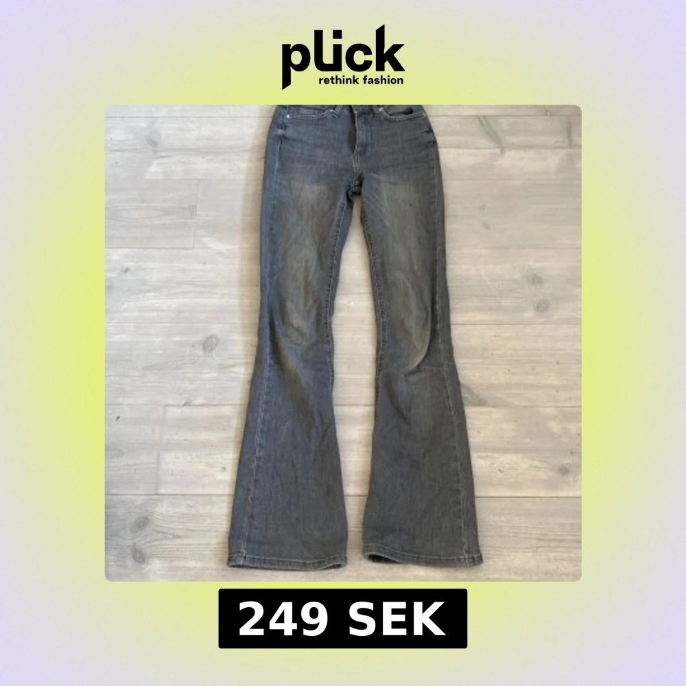 Snygga grå jeans från ONLY i bootcut-modell. Jeansen har klassisk femficksdesign och är tillverkade i mjukt denimtyg. Perfekta för dig som gillar en retroinspirerad look med utsvängda ben.