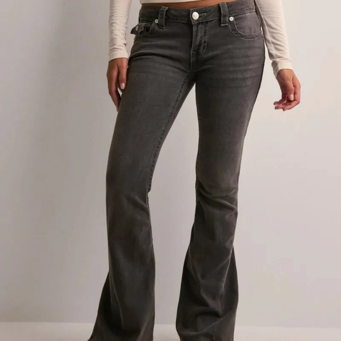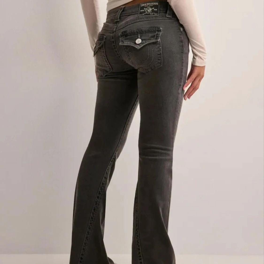 Snygga grå jeans från True Religion med bootcut passform och klassiska detaljer. Jeansen har fem fickor, markerade sömmar och logopatch bak. Tillverkade i stretchig denim för en bekväm känsla och cool look.