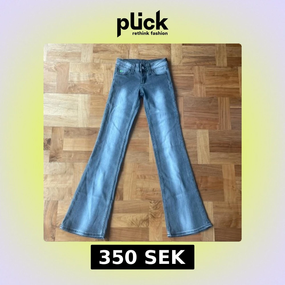 Snygga grå bootcut jeans med en klassisk femficksdesign. De har en lätt tvättad look och är perfekta för en avslappnad stil. Passar bra till både sneakers och klackar.