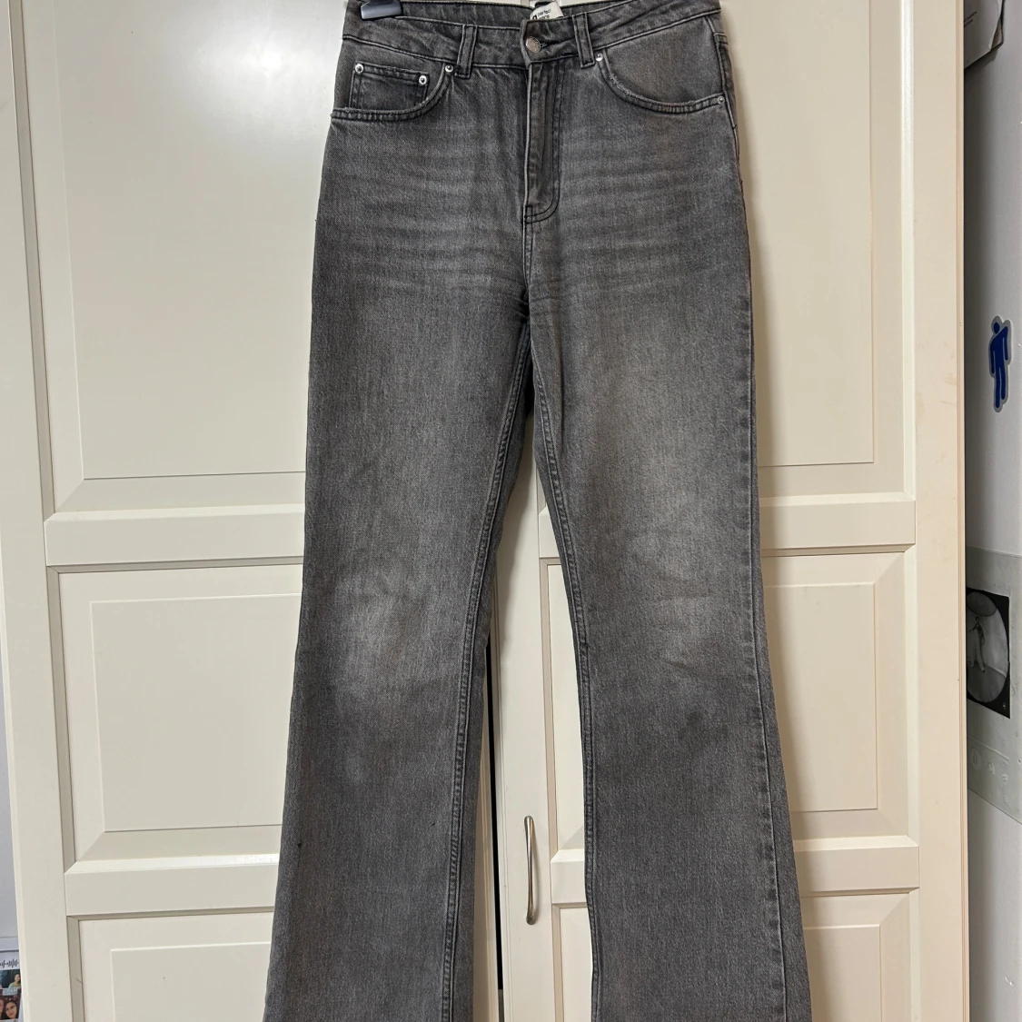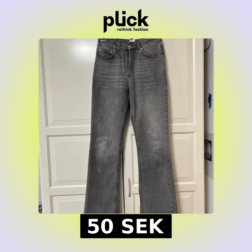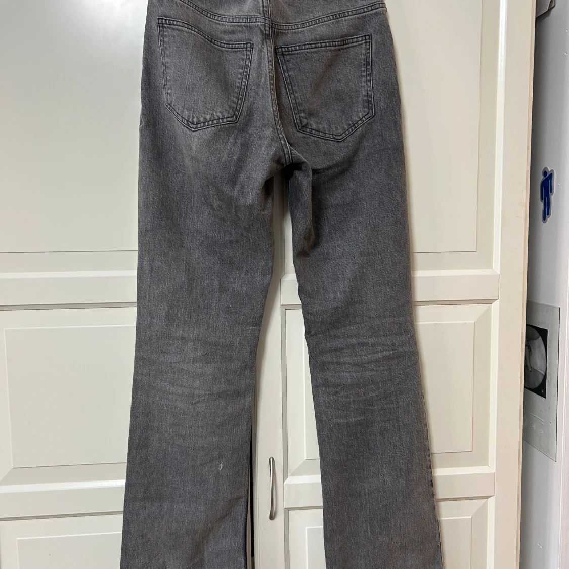 Snygga grå jeans i bootcut-modell. Full length flare från Gina Tricot! Älskade dom så mycket, men använder inte längre, lite slitage långst ner då jeansen är långa men det passar jeansstilen