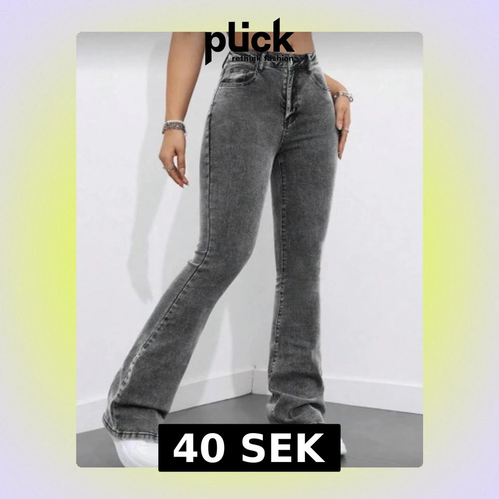 Snygga grå jeans med bootcut passform och hög midja. Jeansen har klassisk femficksdesign, dragkedja och knapp framtill. Materialet är jeans med en tvättad look som ger en cool vibe. Perfekt för dig som gillar en trendig och avslappnad stil.