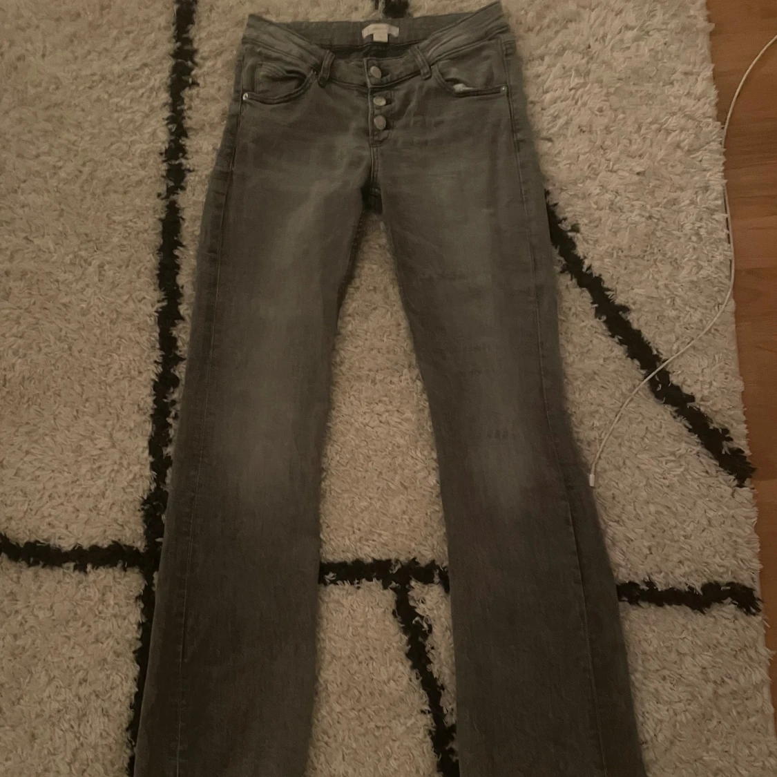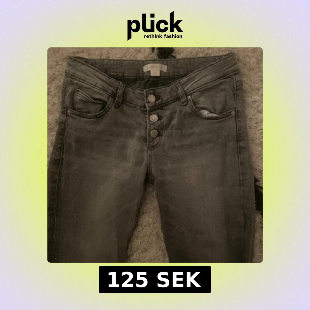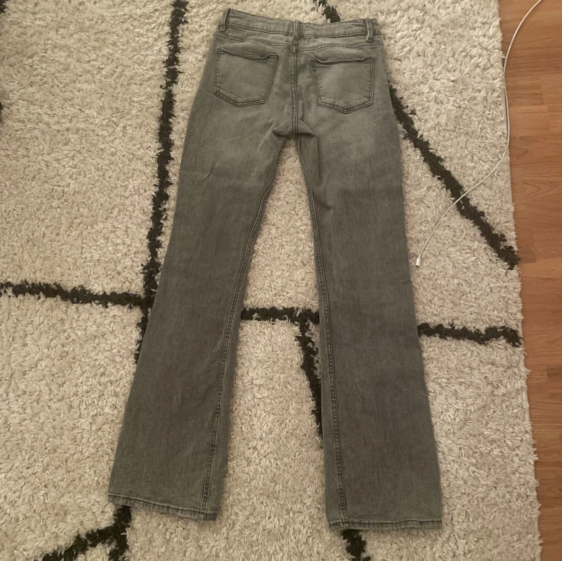 Snygga grå jeans med bootcut-modell och flera knappar i gylfen. Jag har inte andvänd dom så mycke så jag säljer pga att dom inte kommer till andvändning och är lite för långa skriv gärna vid funderingar💗