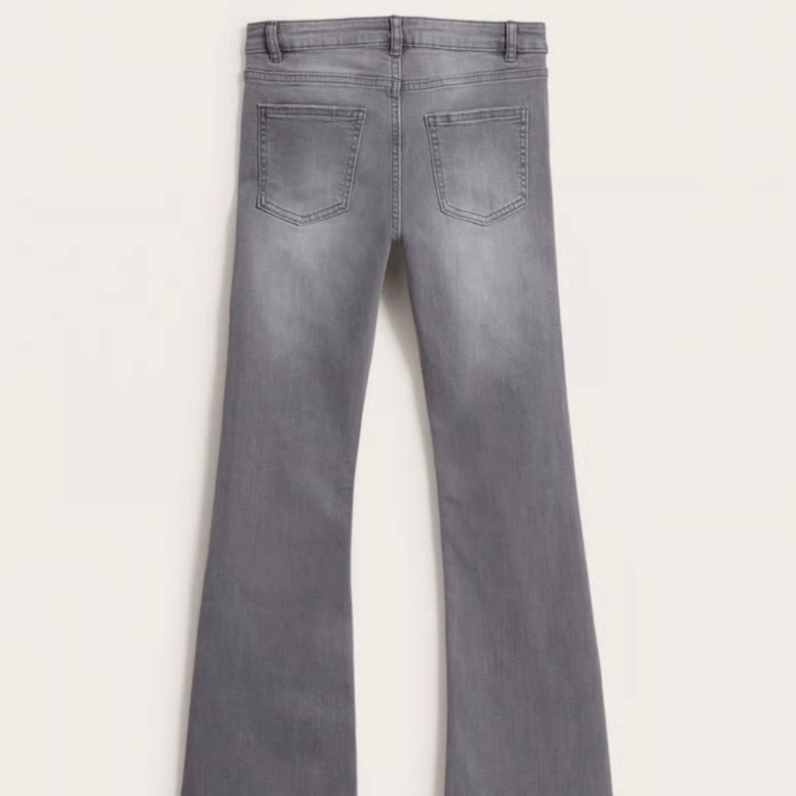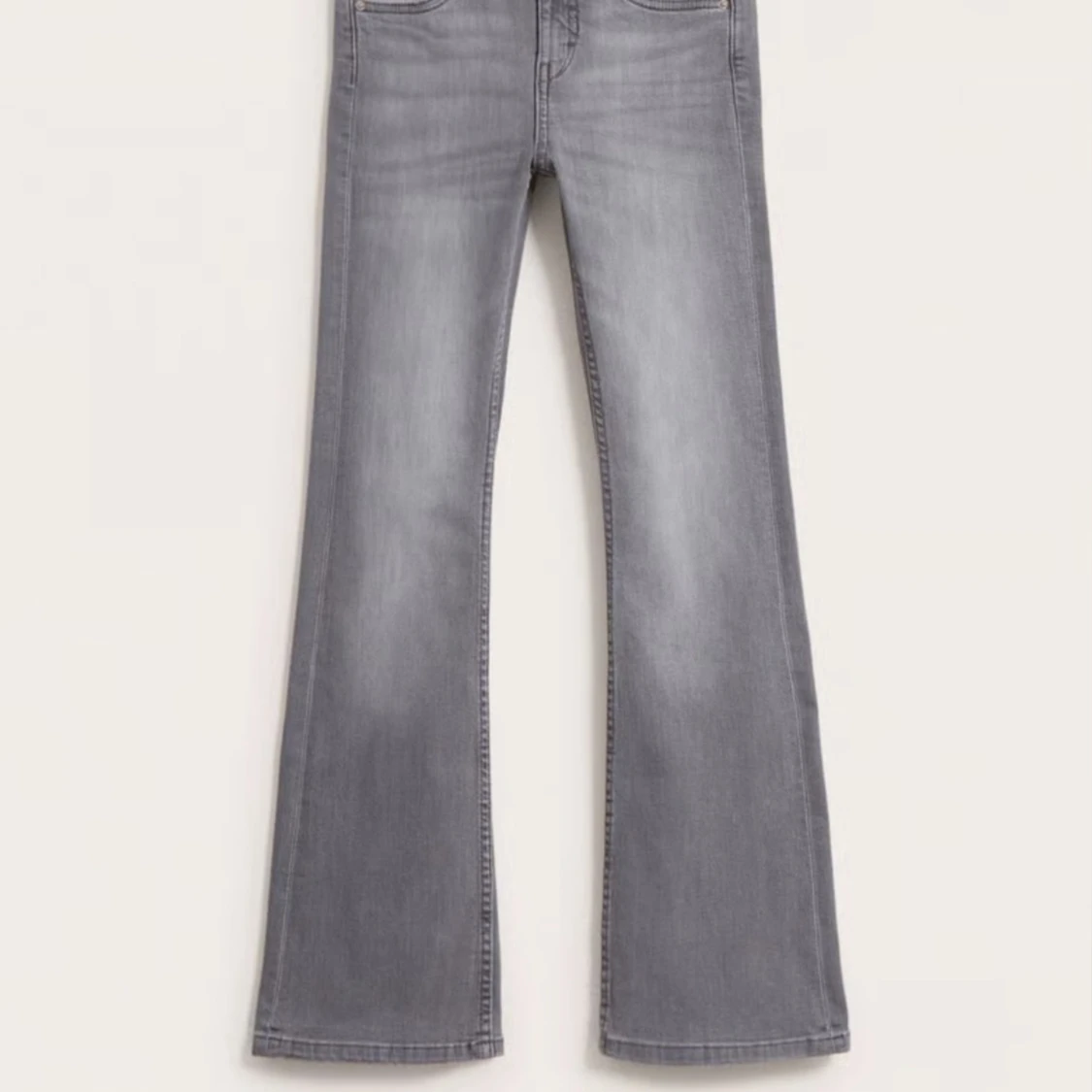 Snygga grå jeans med bootcut och utsvängda ben. Klassisk femficksmodell med bälteshällor och dragkedjegylf. Jeansen har en tvättad look och är tillverkade i mjukt denimtyg som ger en skön passform.