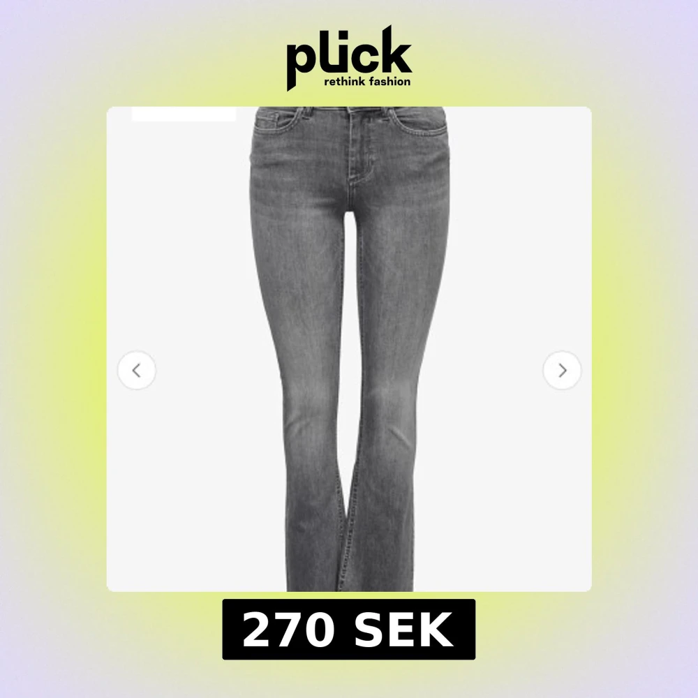 Säljer ett par grå jeans med bootcut passform och midwaist. Jeansen är knappt använda och är i storlek xs längd 32