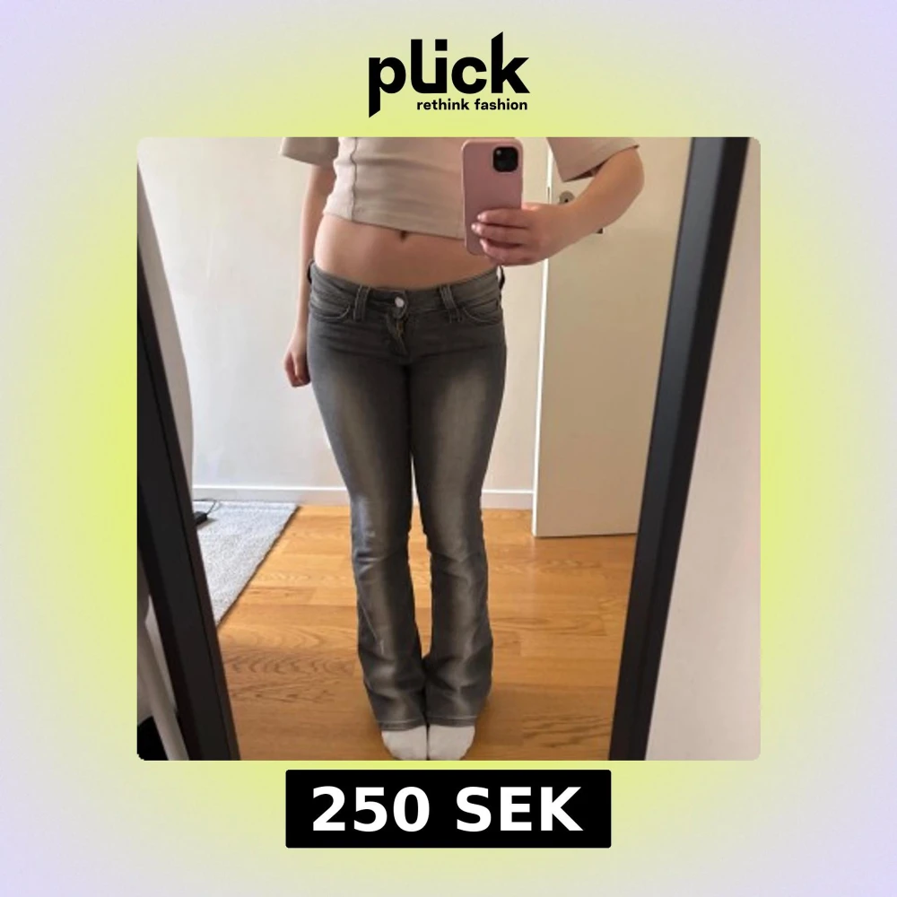 Säjer ett par snygga low waist jeans från weekday, Storlek 24/32. Mycket bra skick säljer pågrund av att de är försmå. Innebenslängd- 81cm. Midjemått- 78,5cm.