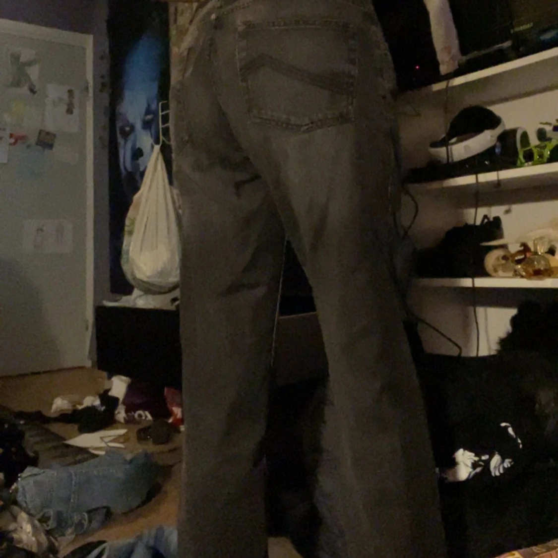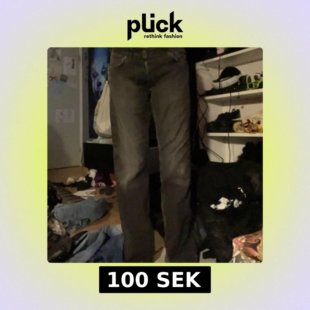 Säljer ett par gråa jeans med bootcut passform. Klassisk femficksmodell med knapp och dragkedja framtill. Jeansen har en något utsvängd benslut och normal midja. Perfekta för dig som gillar en tidlös stil.