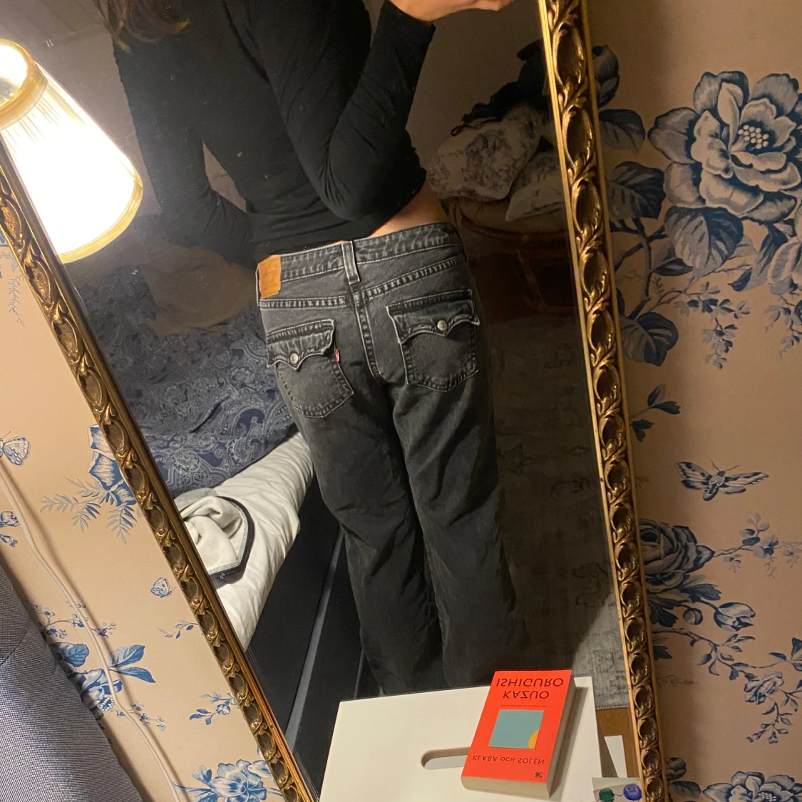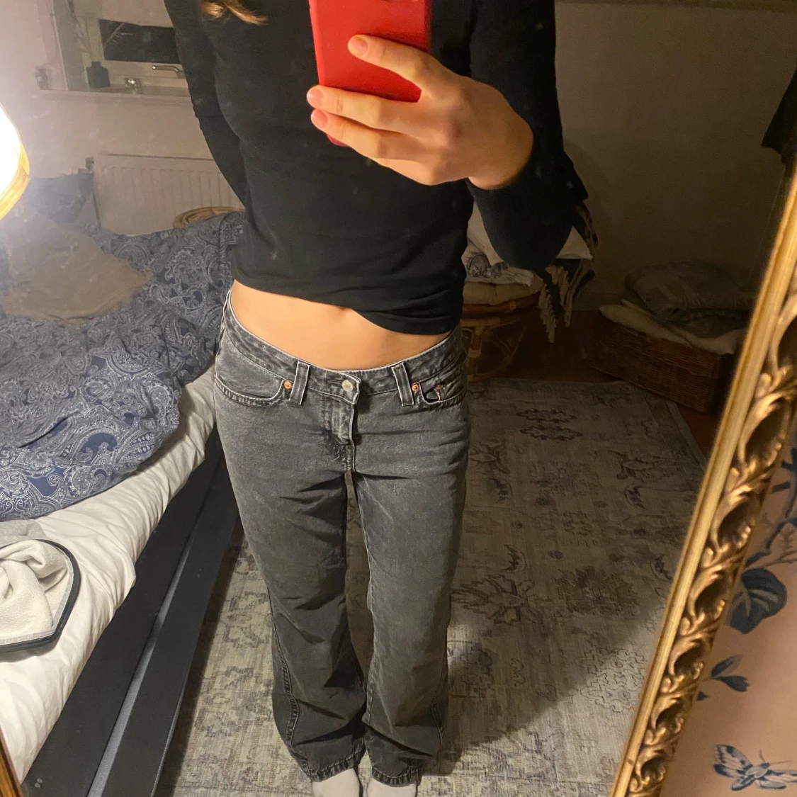 Säljer ett par snygga grå bootcut jeans i storlek 31. Låg midjade. Fint skick!💗(för att informera så håller jag in de lite i midjan på bilderna, så att inga missförstånd uppstår) bara att skriva vid frågor!