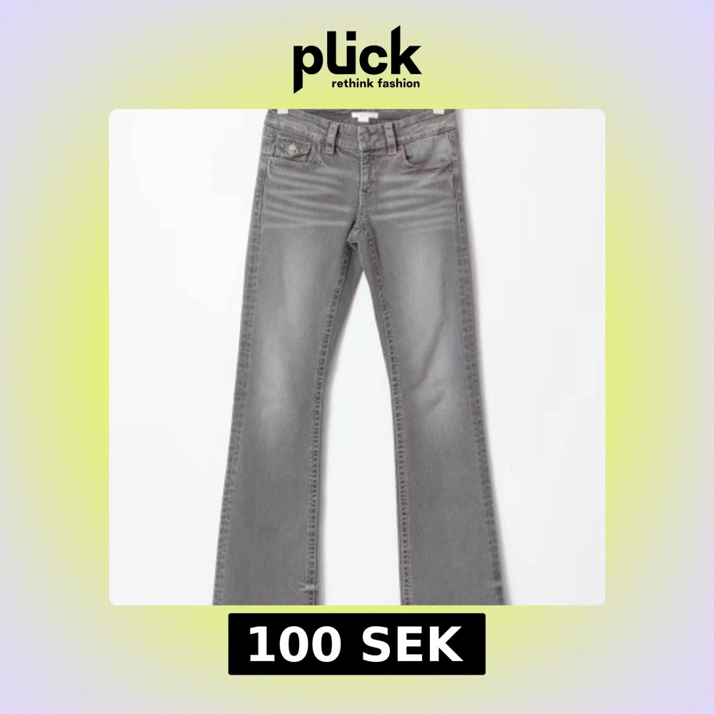 snygga lågmidjade grå bootcut jeans med knappar på fickorna från gina young i storlek 164, säljer för att de inte passar mig. hör av er vid frågor eller intresse🥰
