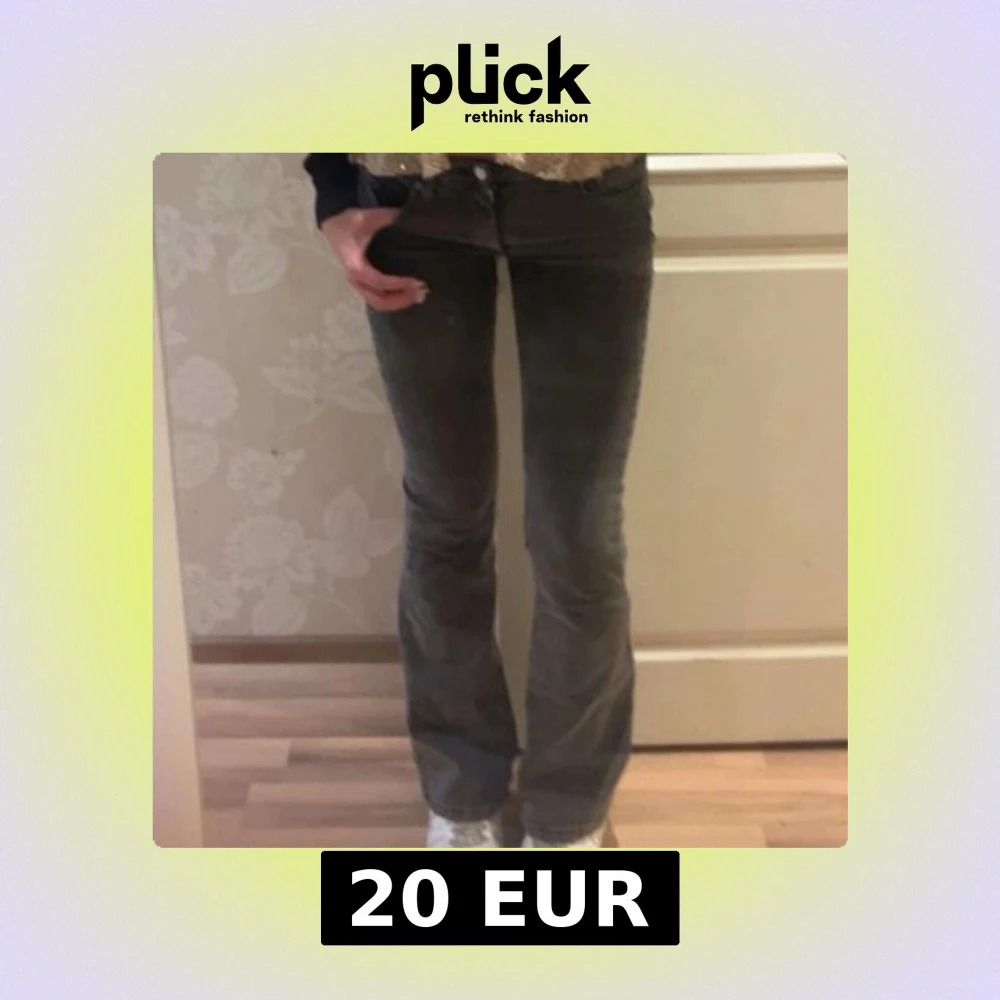 Snygga grå bootcut jeans med en klassisk femficksdesign. De har en knapp- och dragkedjestängning framtill och är perfekta för en avslappnad stil. Passar bra med sneakers. Jag är 174cm💕