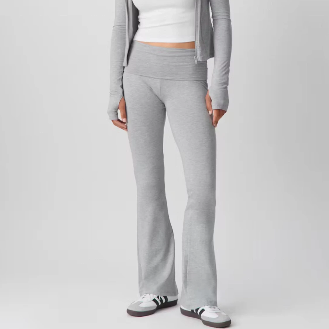Superbekväma grå mjukisbyxor från Gina Tricot i bootcut-modell. Byxorna har hög midja med bred linning och är gjorda i mjukt bomullsmaterial med lite stretch. Perfekta för chill dagar eller när du vill ha en avslappnad look.