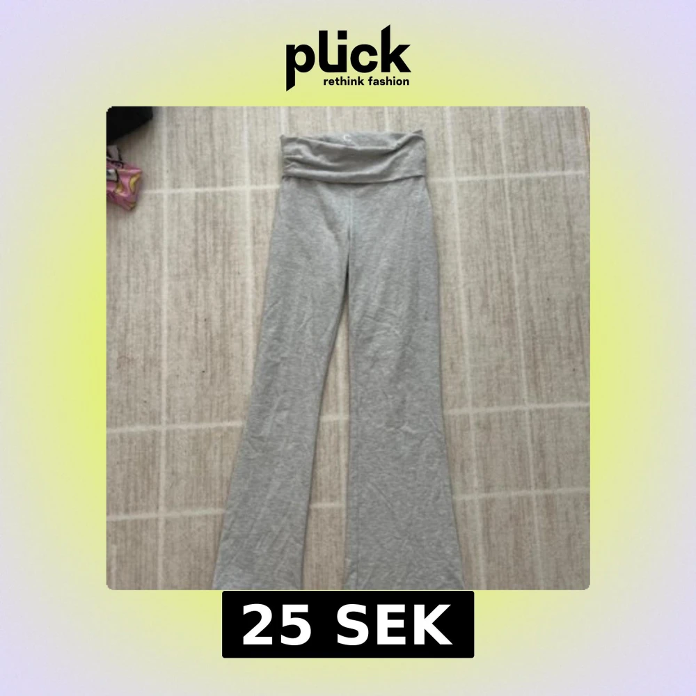 Snygga grå yogapants med bootcut-ben och bred, vikbar midja. Byxorna är i mjukt bomullsmaterial och har en avslappnad passform som är perfekt för chill dagar eller träning. Enkla att matcha med en hoodie eller crop top.