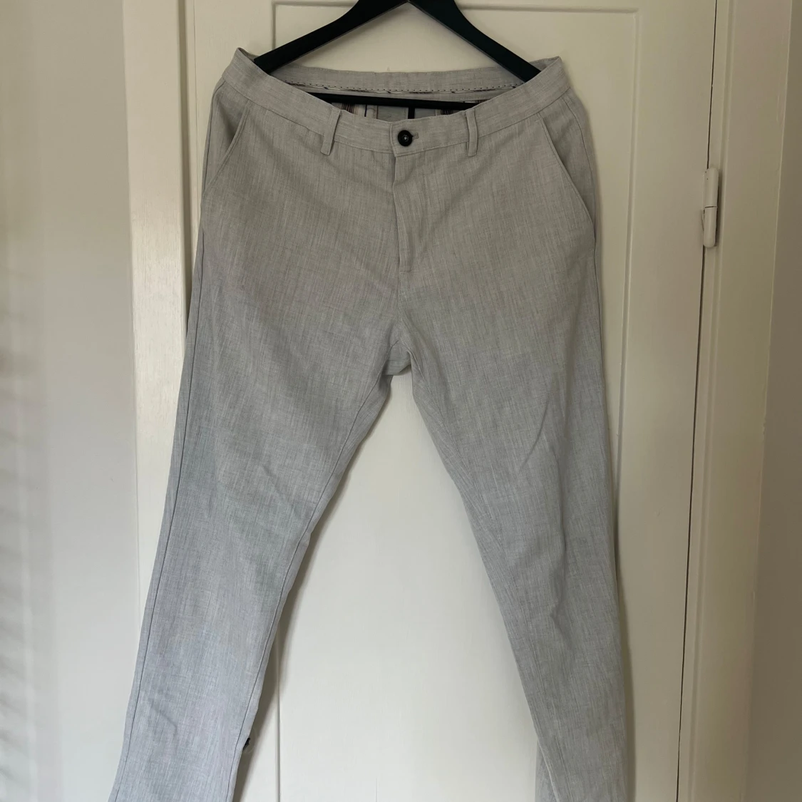 Säljer ett par stilrena grå byxor från Zara i storlek EUR 42/USA 32. De är tillverkade i Turkiet och har en klassisk design med knappar och dragkedja. Perfekta för både vardag och fest!
