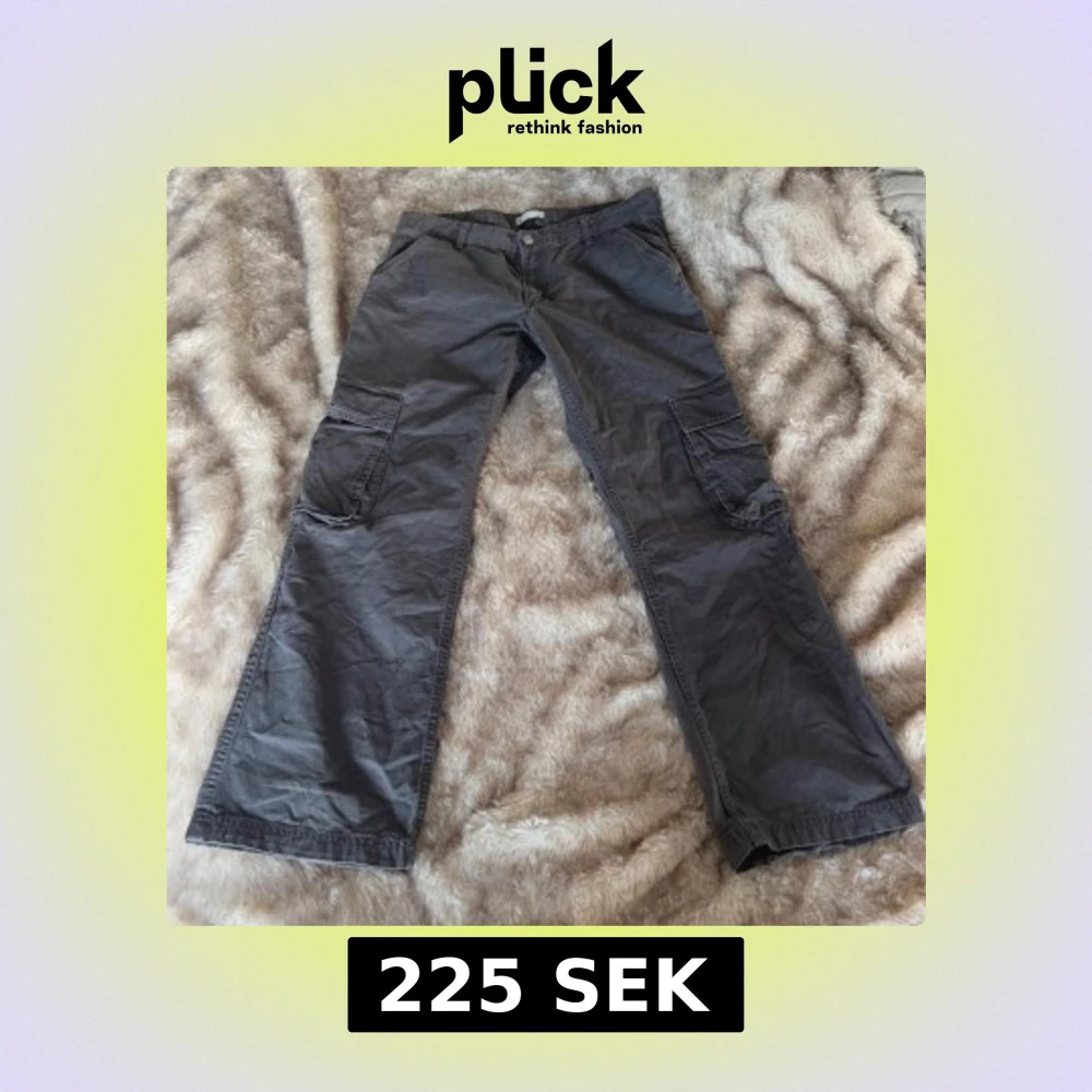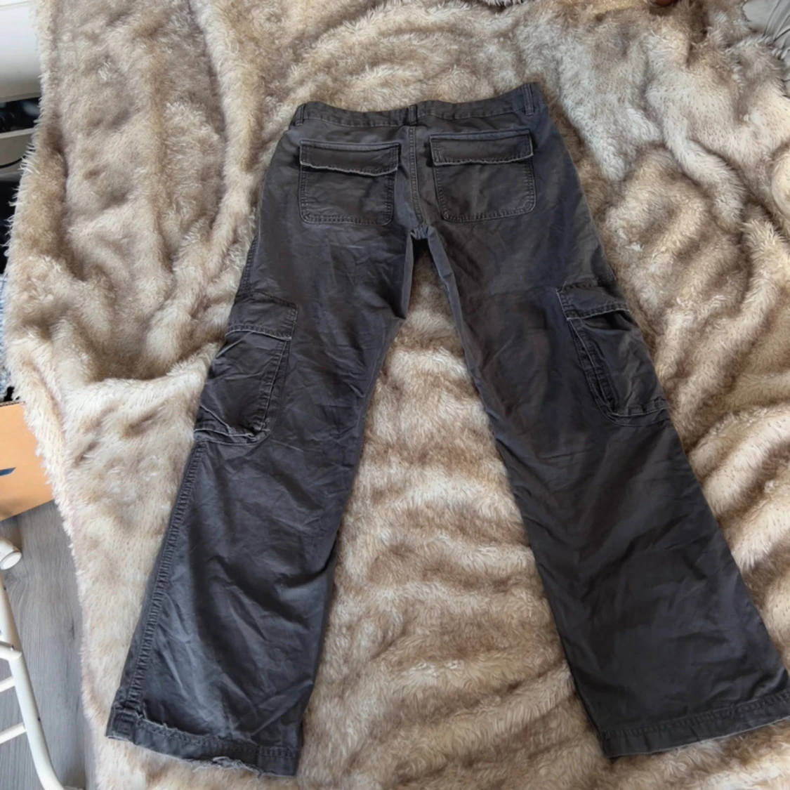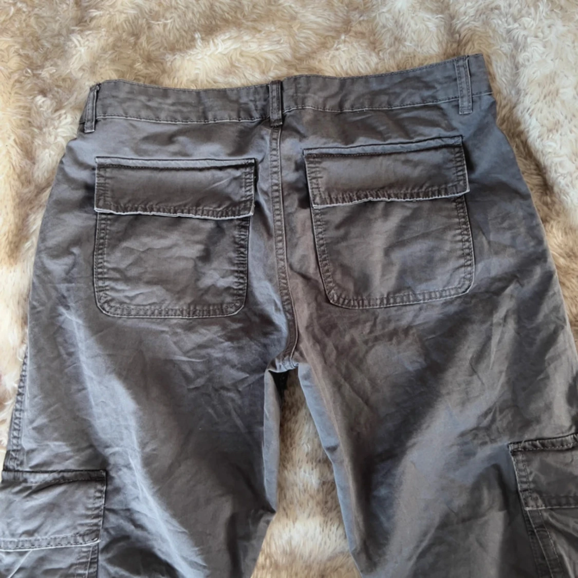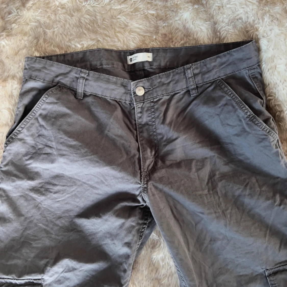 Snygga grå cargobyxor från Gina Tricot med raka ben och flera stora fickor på sidorna och bak.