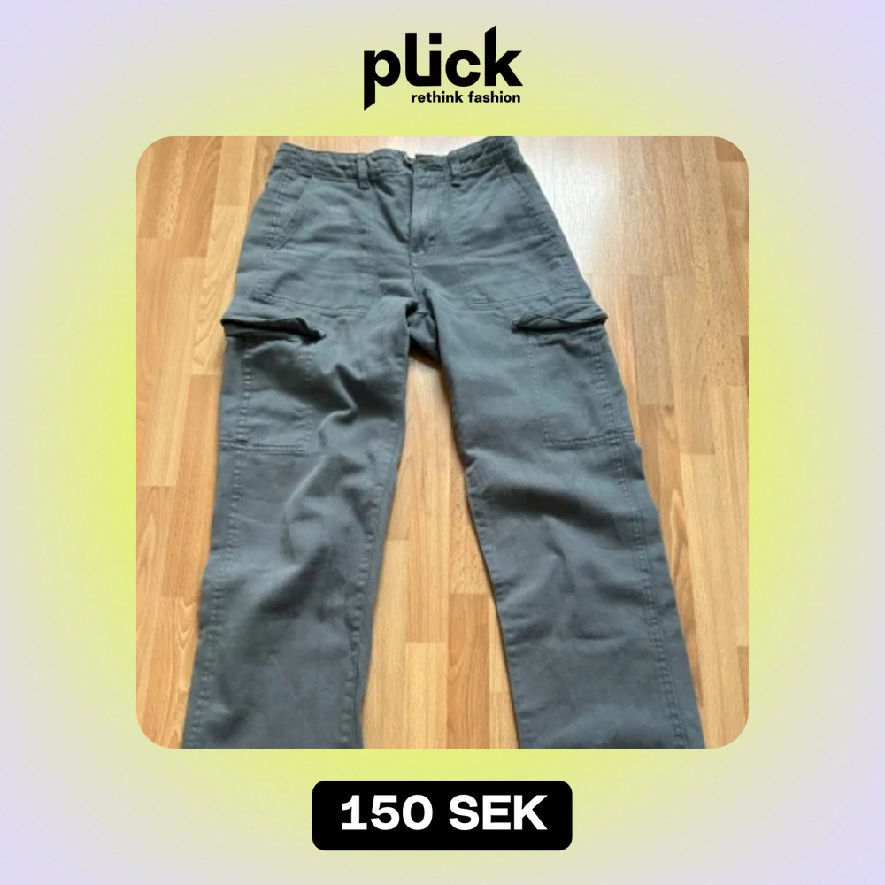 Säljer ett par grå cargopants. De har flera fickor, inklusive två stora fickor på sidorna och en bakficka. Byxorna är i bra skick och perfekta för vardagsbruk eller utomhusaktiviteter.