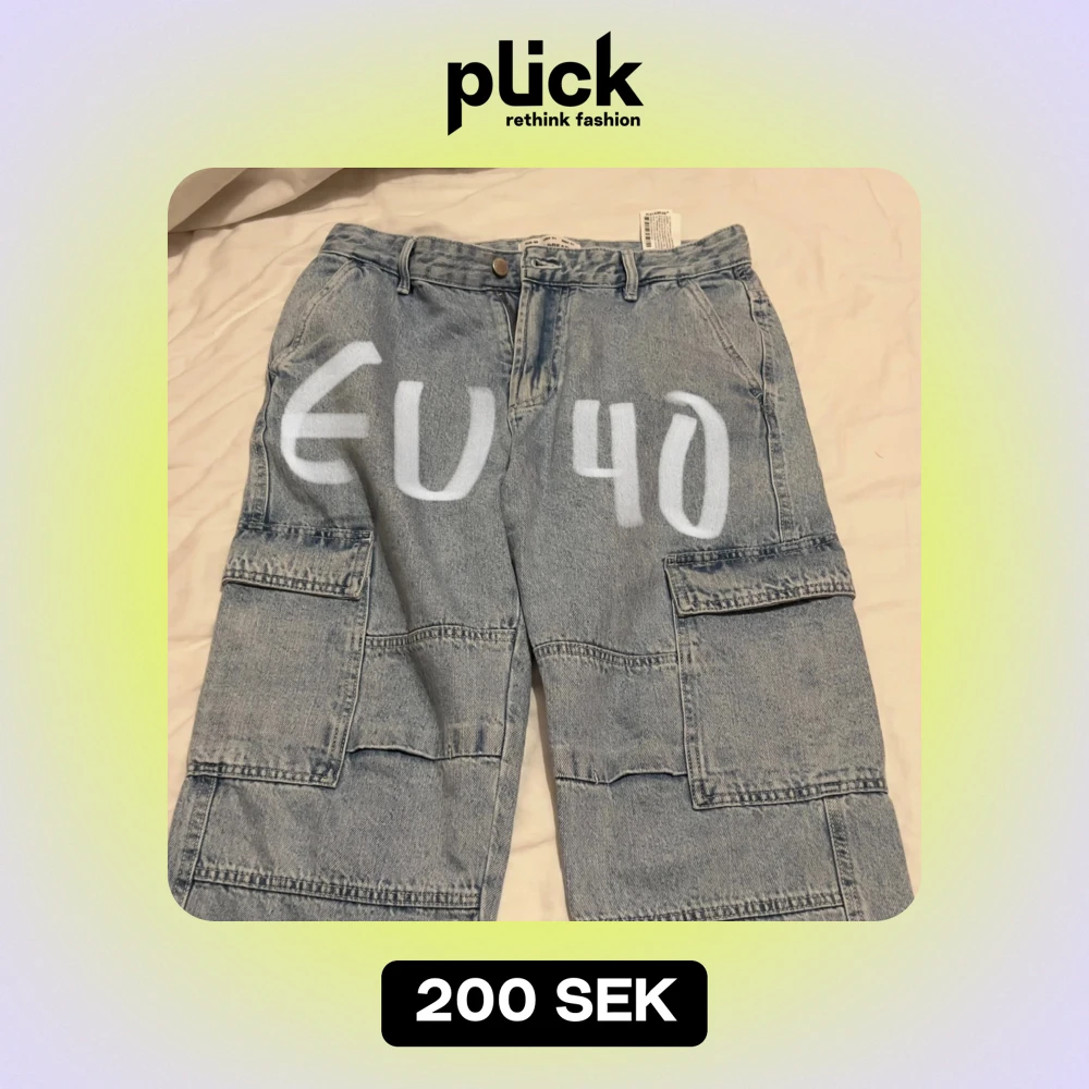 Säljer ett par grå cargopants i denim. De har flera praktiska fickor och en loose passform som ger en avslappnad stil. Perfekta för vardagsbruk eller en casual utflykt. Byxorna är i bra skick och redo för nya äventyr!