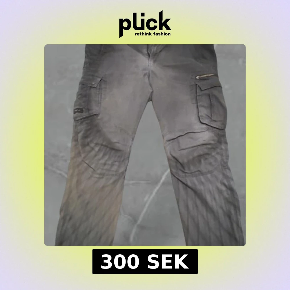 Storlek L. Säljer ett par grå cargopants med flera praktiska fickor och dragkedja. Byxorna har en loose passform och är perfekta för en avslappnad stil. De har även förstärkta knän för extra hållbarhet.