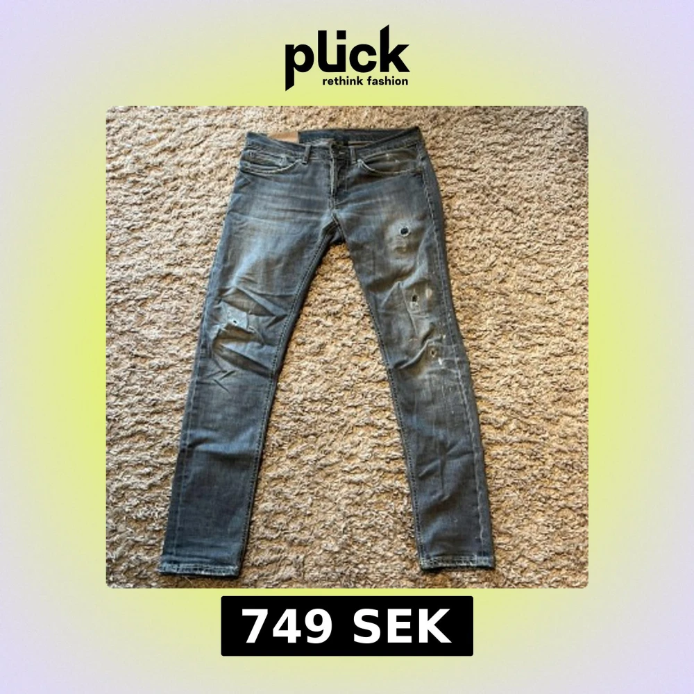 Säljer ett par grå slim fit jeans från dondup med slitningar och blekningar på framsidan. Jeansen har klassisk femficksdesign.