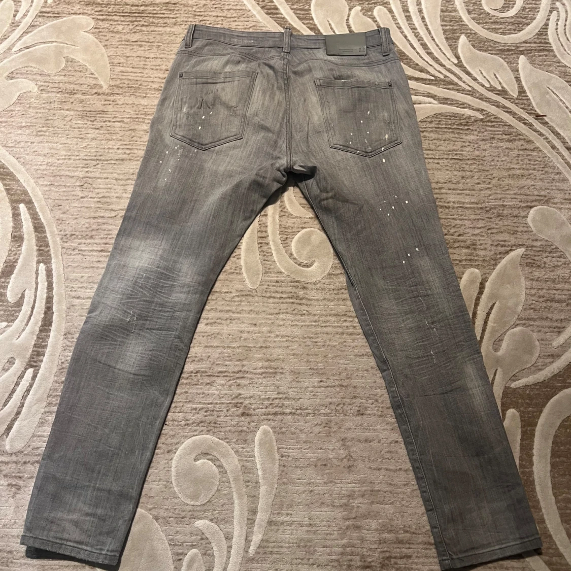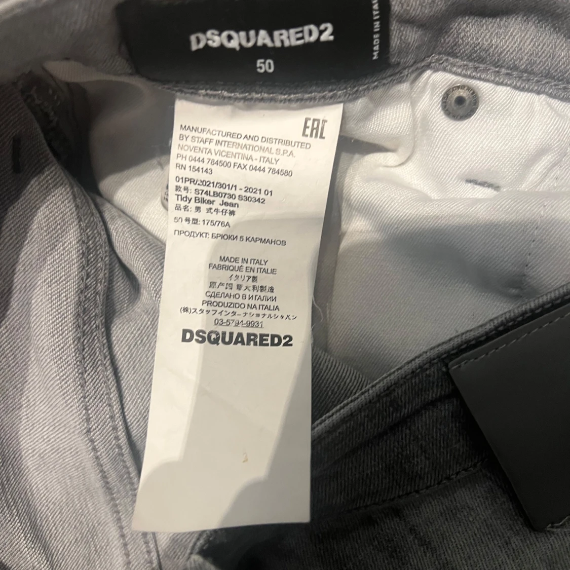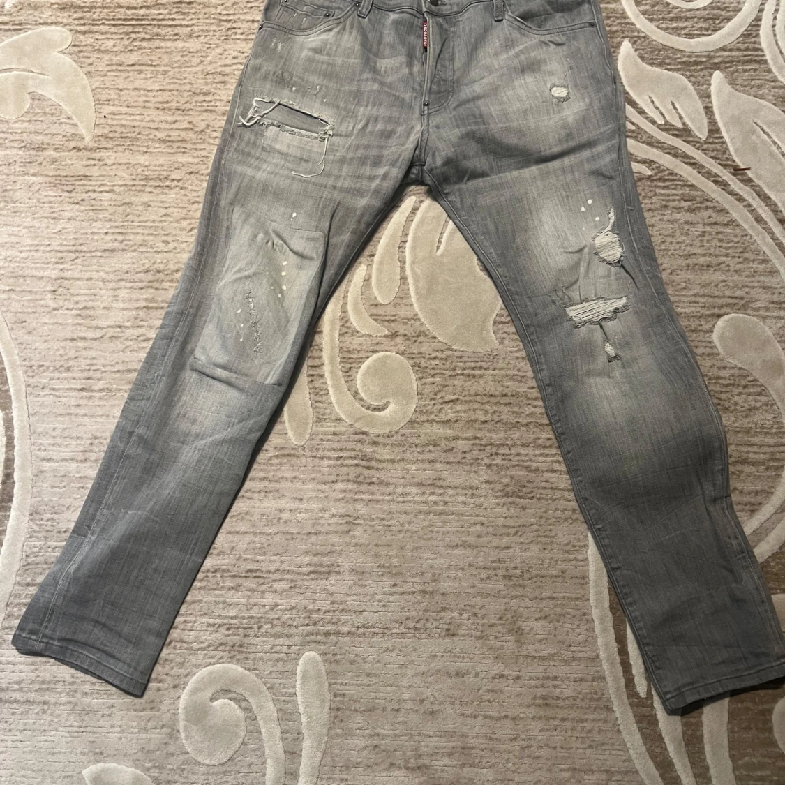 Snygga grå jeans från Dsquared2 med slitna detaljer och färgstänk för en cool, avslappnad vibe. Klassisk femficksmodell med Dsquared2-logga på röd etikett och patch bak i midjan. Raka ben och normal passform, perfekt till sneakers.