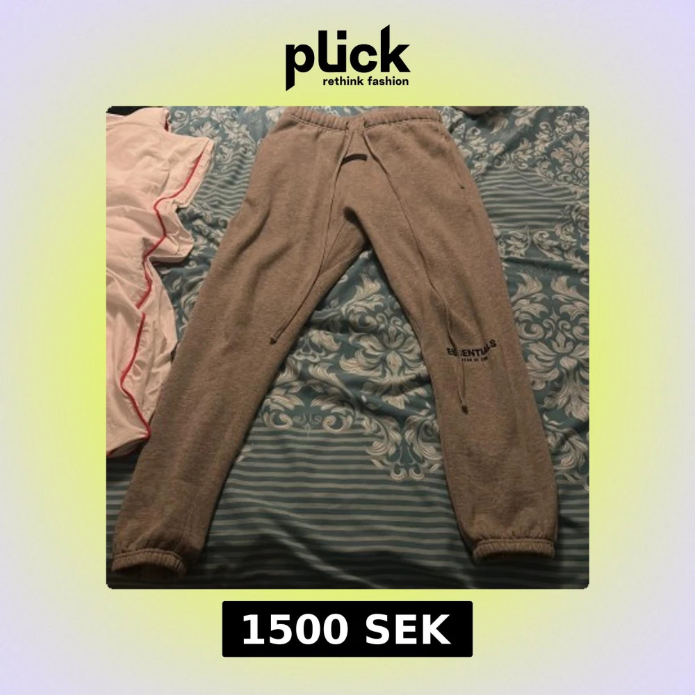 Snygga grå mjukisbyxor från Essentials Fear of God med elastisk midja och långa snören. Byxorna har tryckt logga på benet och muddar vid bensluten för en skön passform. Perfekta för chill dagar eller streetwear-stil. Dom är helt nya har använt dom cirka 2 till 3 gånger