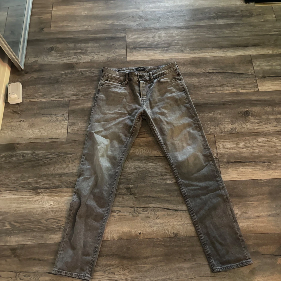 Snygga grå jeans från Jack & Jones med klassisk femficksdesign och raka ben. Jeansen har en stilren look och är tillverkade i mjukt denimtyg. Perfekta för dig som gillar en enkel men trendig stil. Storlek 31 midja och 34 längd