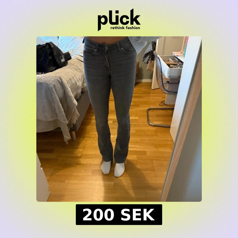 Säljer ett par grå jeans från ONLY i storlek XS/32. Men passar även S/34. Modellen har bootcut-ben och klassisk femficksdesign. Jeansen är midwaist och har en snygg, mörkgrå tvätt. Materialet är stretchigt jeans för skön passform och stilren look. Som man kan se på sista bilden har ena lossnat men inget som syns när man har på sig dem. Säljer på grund av att de blivit lite för små. Skriv privat för fler bilder. Passar med långa ben också.💕