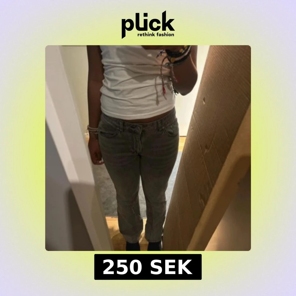 Säljer ett par grå jeans från Gina Tricot. Dem är låg/mid i midjan och nästan aldrig använda!