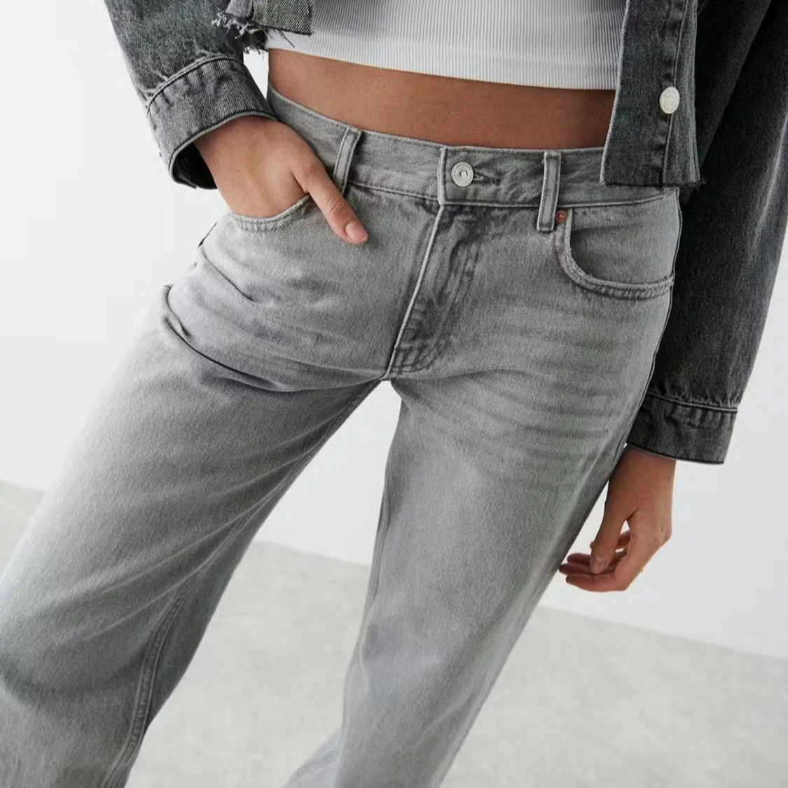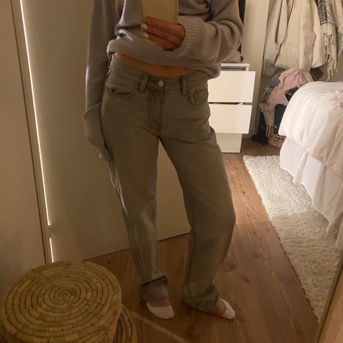 Grå straight low jeans från Gina, kommer inte till användning längre!