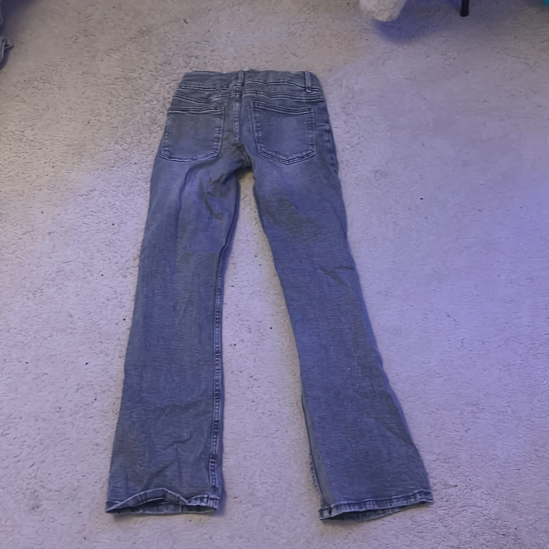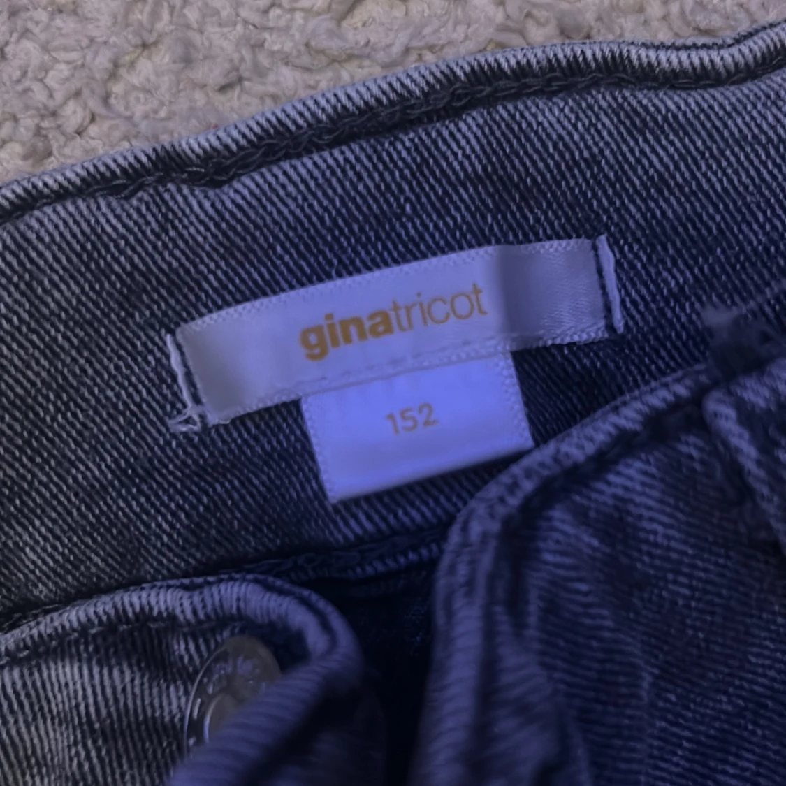 Snygga grå jeans från Gina Tricot i storlek 152. Modellen har raka ben, stora fickor fram och klassiska bakfickor. Jeansen är i ett mjukt denimtyg och passar perfekt till en avslappnad stil.