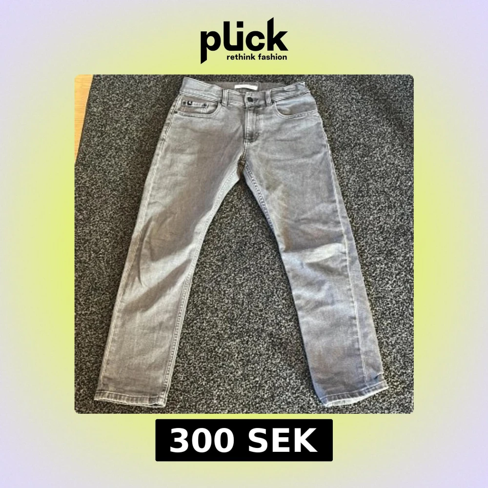 Snygga grå jeans från Calvin Klein med klassisk femficksdesign och dragkedja. De har en rak passform och är perfekta för en stilren look. Märkeslogga på baksidan ger en extra touch av stil.