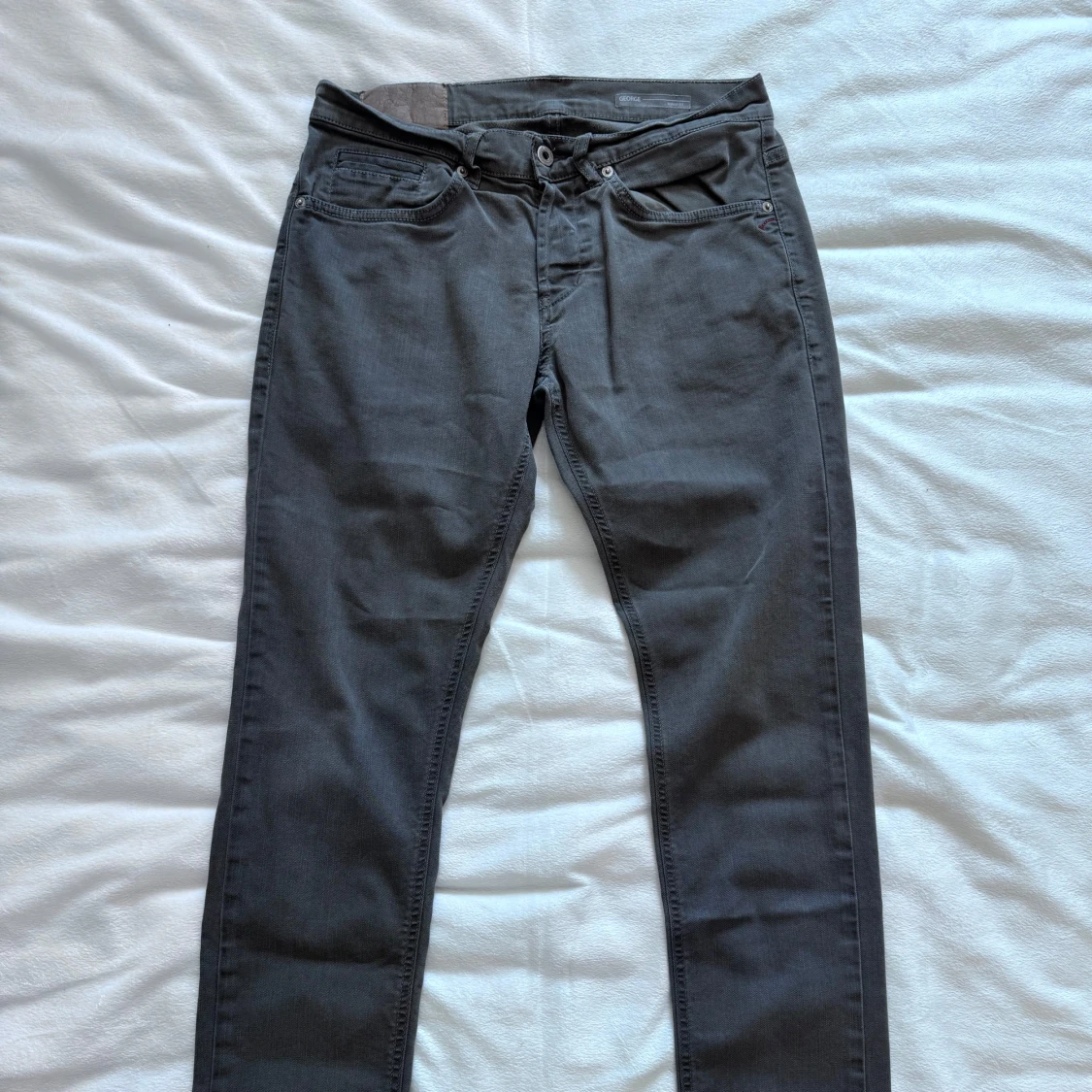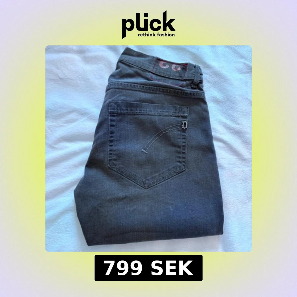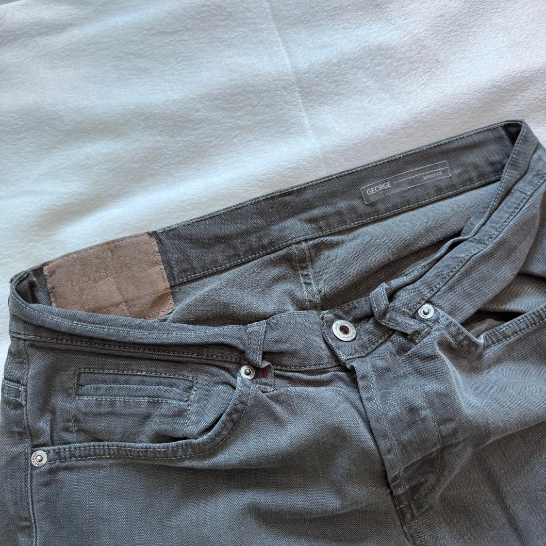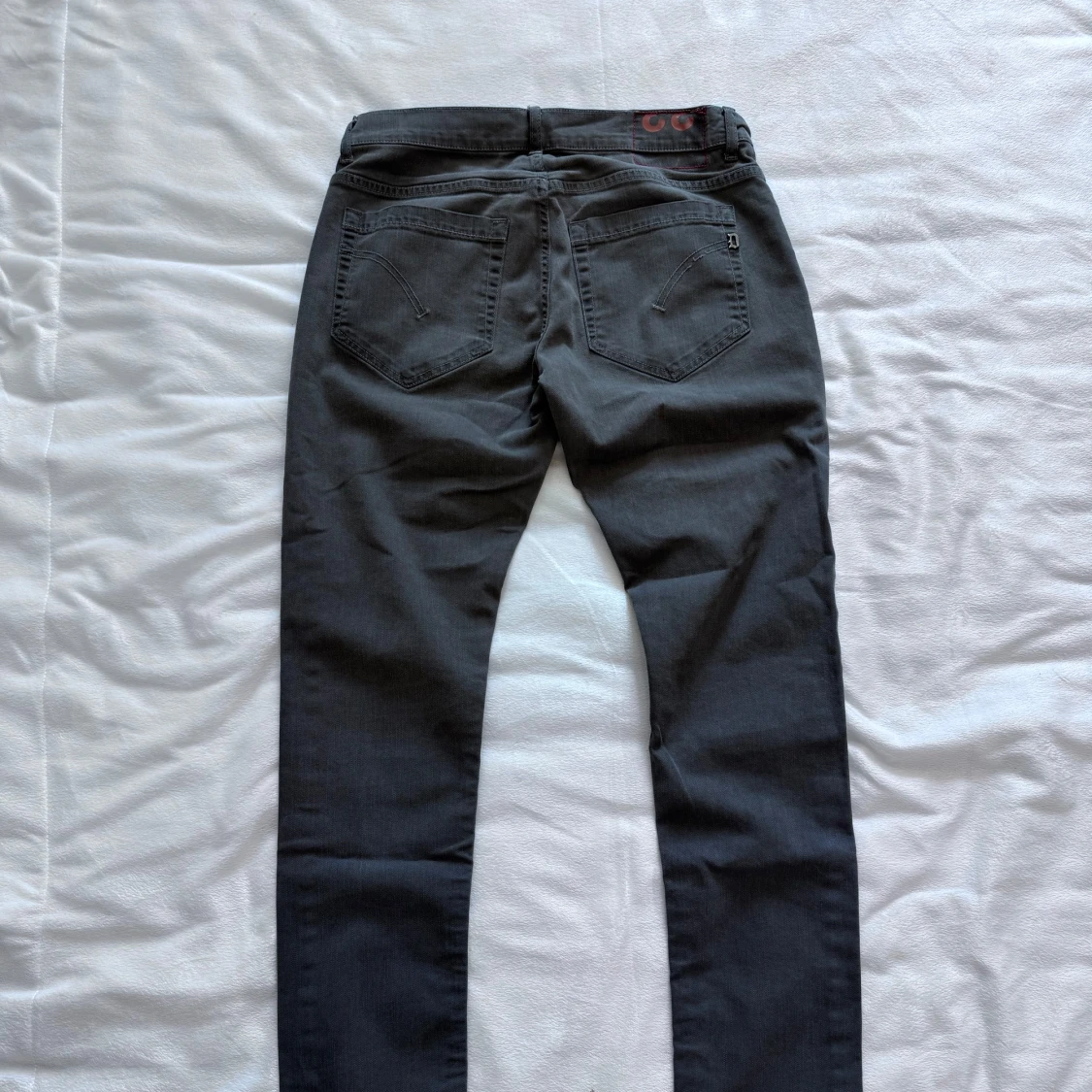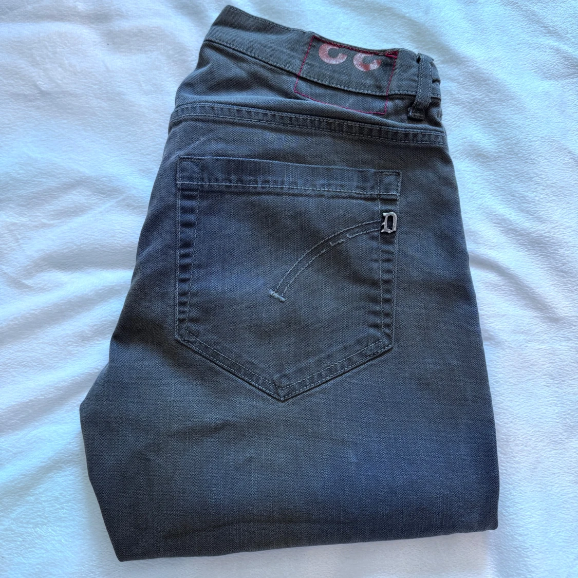 Snygga grå jeans från Dondup. Jeansen har klassiska fem fickor, silverfärgade nitar och en diskret logga på bakfickan. Materialet är mjukt och stretchigt för en bekväm passform. Midjemått: 40 cm benlängd: 104 cm !! Priset kan diskuteras!!