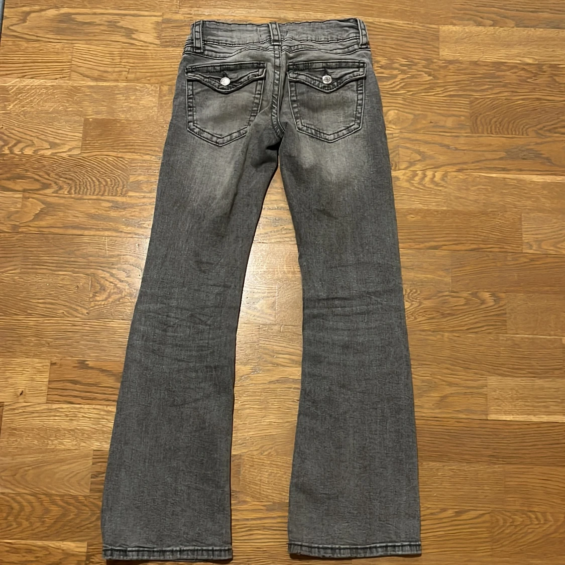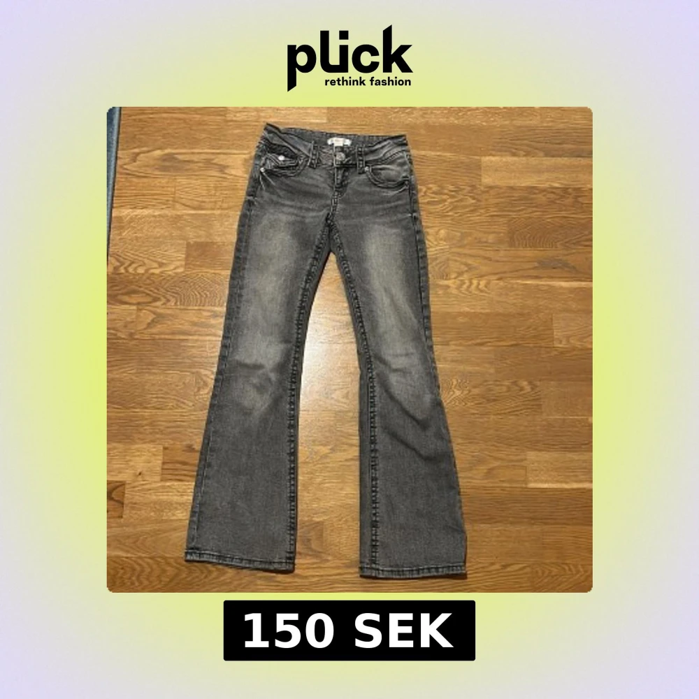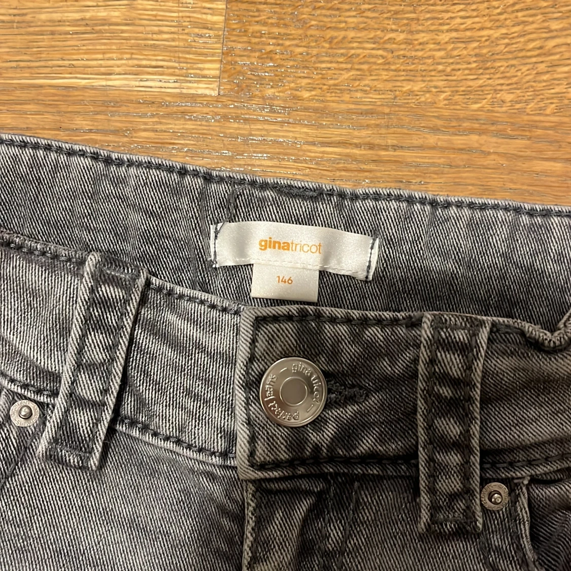 Snygga grå low waist bootcut jeans från Gina Tricot Young. Har används flera gånger men är i väldigt bra skick! Säljer för de är för korta för mig. Skriv gärna till mig innan ni köper💞
