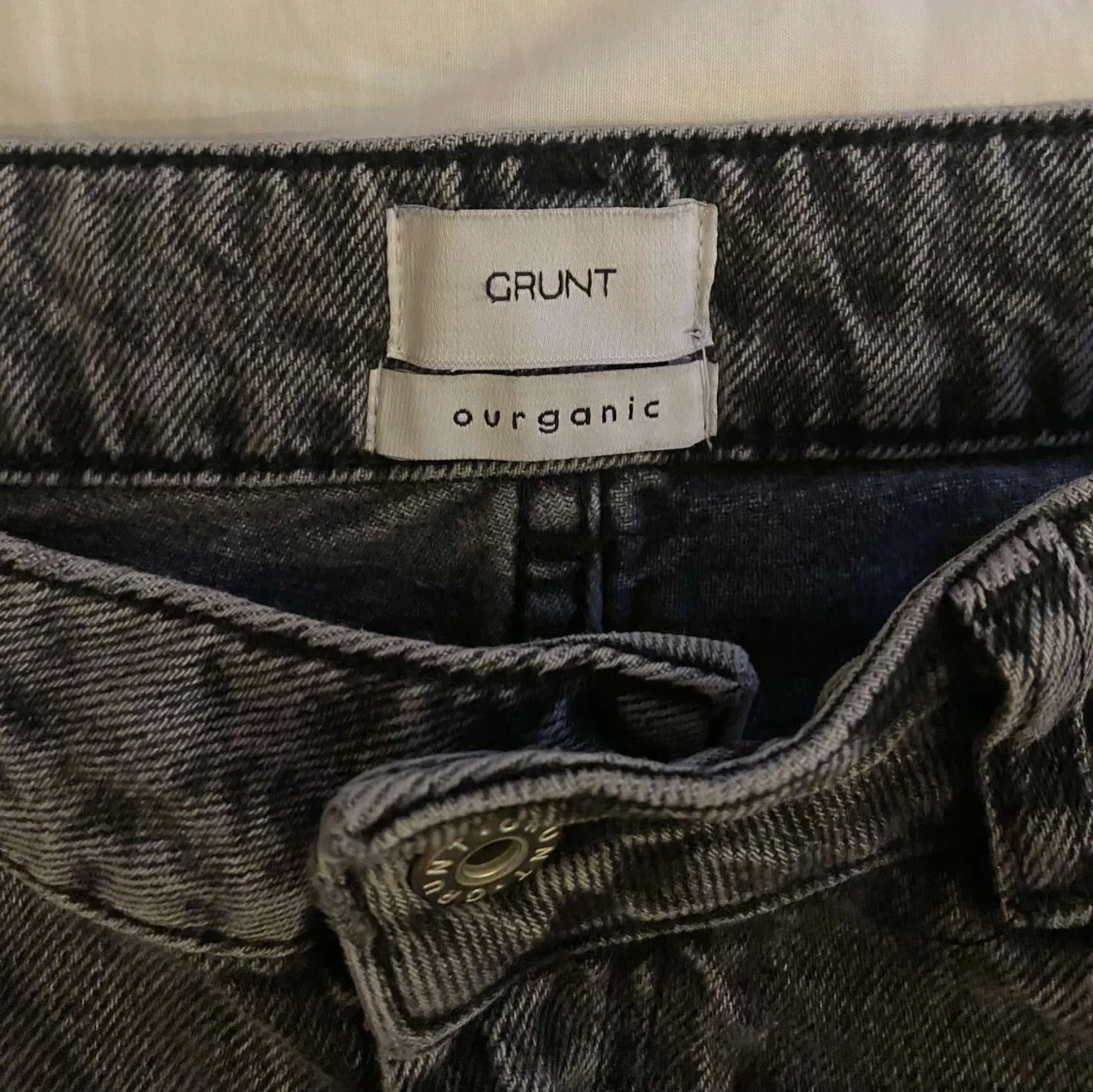 Säljer ett par snygga grå jeans från Grunt som är köpte från kidsbrandatore för 500kr. som passar perfekt för vardagsbruk. De har en klassisk design med knapp och dragkedja framtill. Jeansen är i mycket bra skick och har en stilren look som funkar året runt. Storlek 158-164