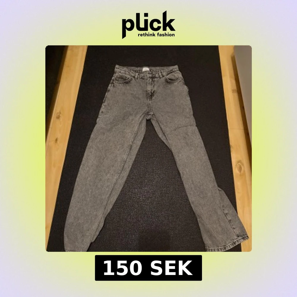 Säljer ett par grå tvättade jeans från Grunt i storlek 26. Klassisk femficksmodell med raka ben och normal passform. Jeansen har en snygg stentvättad look och är tillverkade i jeanstyg av bomull.