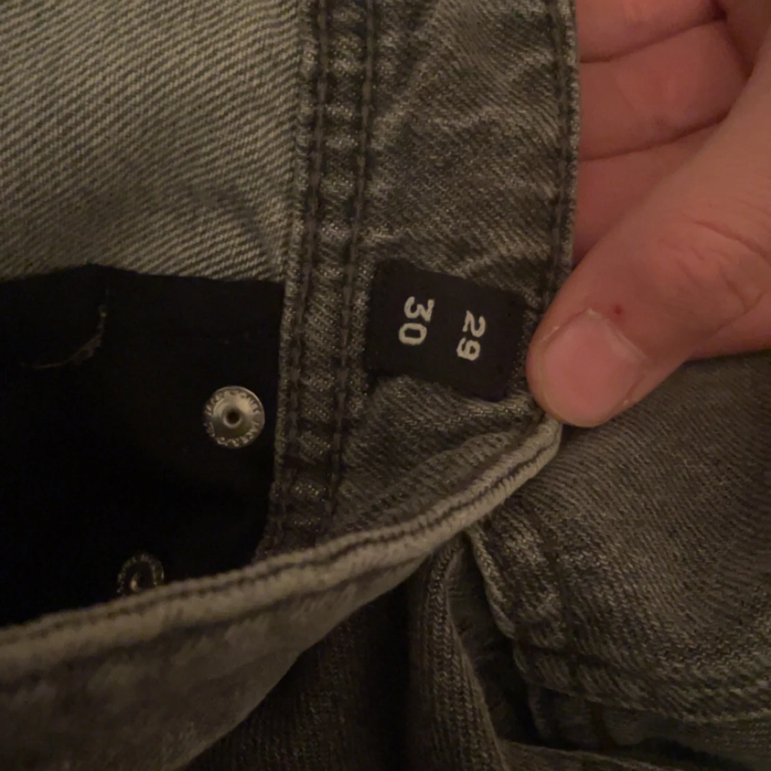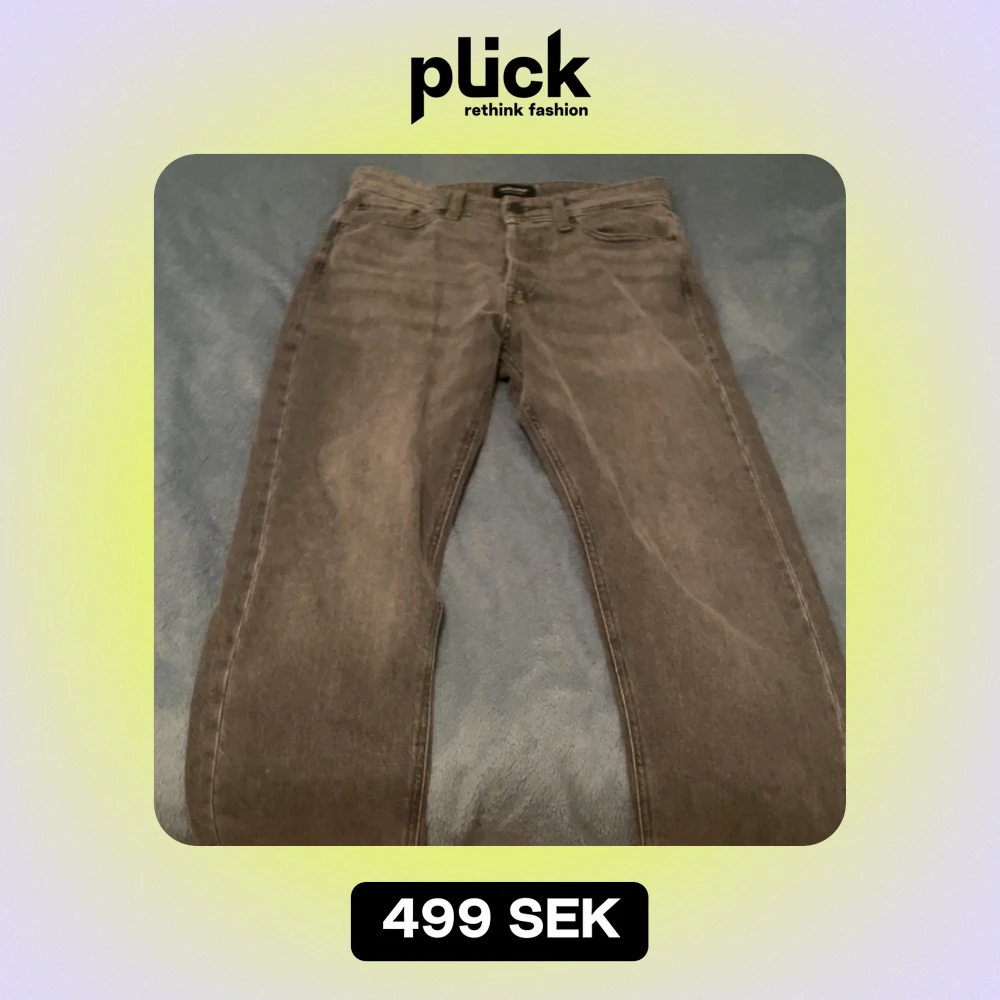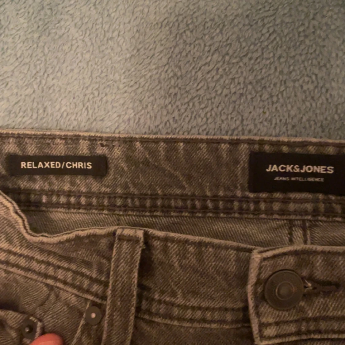 Säljer ett par grå jeans från Jack & Jones i modellen Relaxed/Chris. De har en avslappnad passform och är perfekta för en casual look. Jeansen är i bra skick och har en klassisk design med knappar och dragkedja. Perfekta för både vardag och fest!