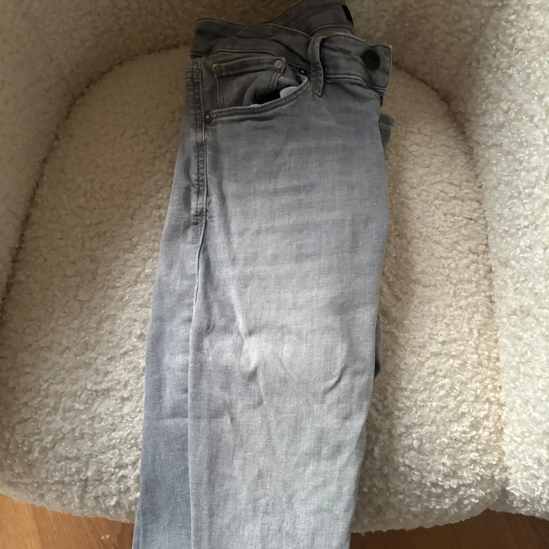 Snygga grå jeans från Jack & Jones med klassisk femficksdesign och diskret bakficka med broderad detalj. Jeansen har en ljusgrå tvätt och är tillverkade i mjukt denimtyg som ger en skön känsla. Perfekta för en avslappnad och stilren look.