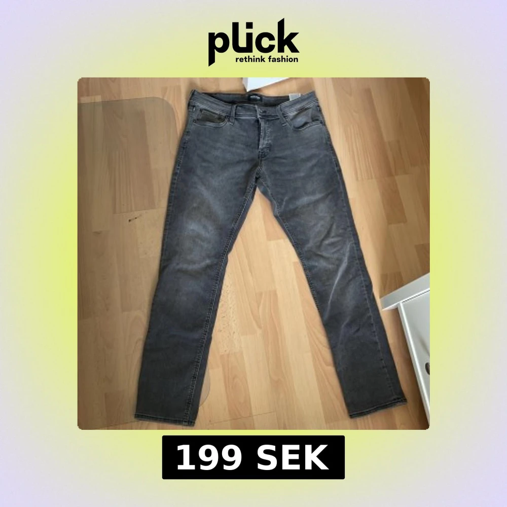 Säljer ett par grå jeans från Jack & Jones med klassisk femficksdesign och raka ben. Jeansen har dragkedja och knapp i gylfen samt diskreta sömmar på bakfickorna. Perfekta för en stilren vardagslook. W32 L32