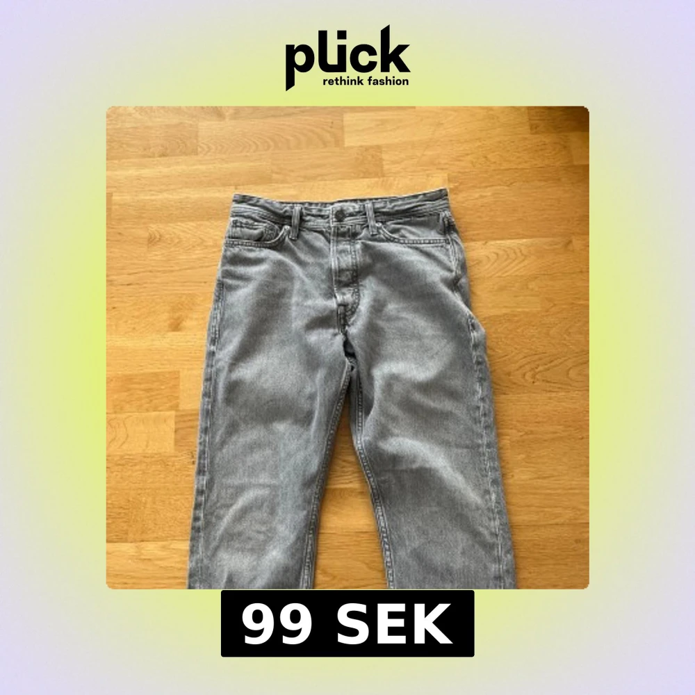 Säljer ett par grå jeans från Jack & Jones i klassisk femficksmodell. Jeansen har normal passform och raka ben, med knapp- och dragkedjegylf. Perfekta för dig som gillar en enkel och stilren look. Jeansen kan lukta konstigt men det beror på att de inte är tvättade och använda på ett tag