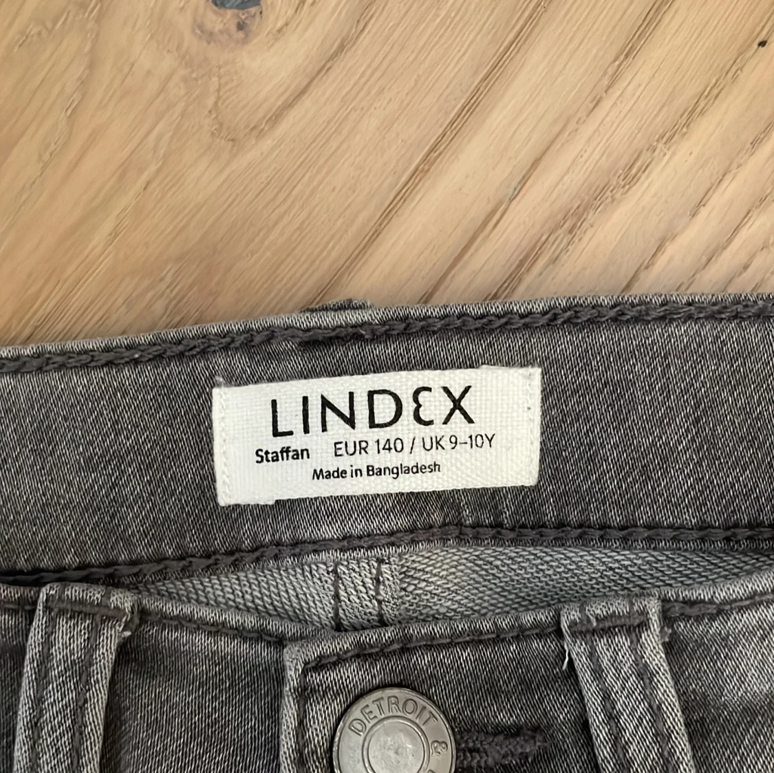 Säljer ett par grå jeans från Lindex i storlek EUR 140/9-10Y. De har en klassisk femficksdesign och är tillverkade i ett slitstarkt material. Perfekta för vardagsbruk! Slim fit, modellen är Staffan. Priset är inte hugget i sten.