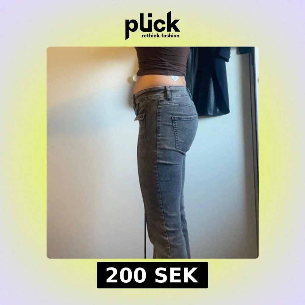 Snygga grå jeans från Nelly med låg midja och bootcut-stil. Byxorna har praktiska fickor och är tillverkade i en stretchig bomullsblandning för extra komfort. Perfekta för en avslappnad look.