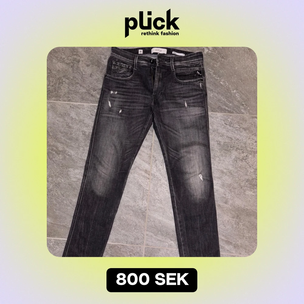 Säljer ett par snygga grå jeans från Replay i modellen Anbass. De har en cool slitningseffekt och klassisk femficksdesign. Perfekta för både vardag och fest! 🖤