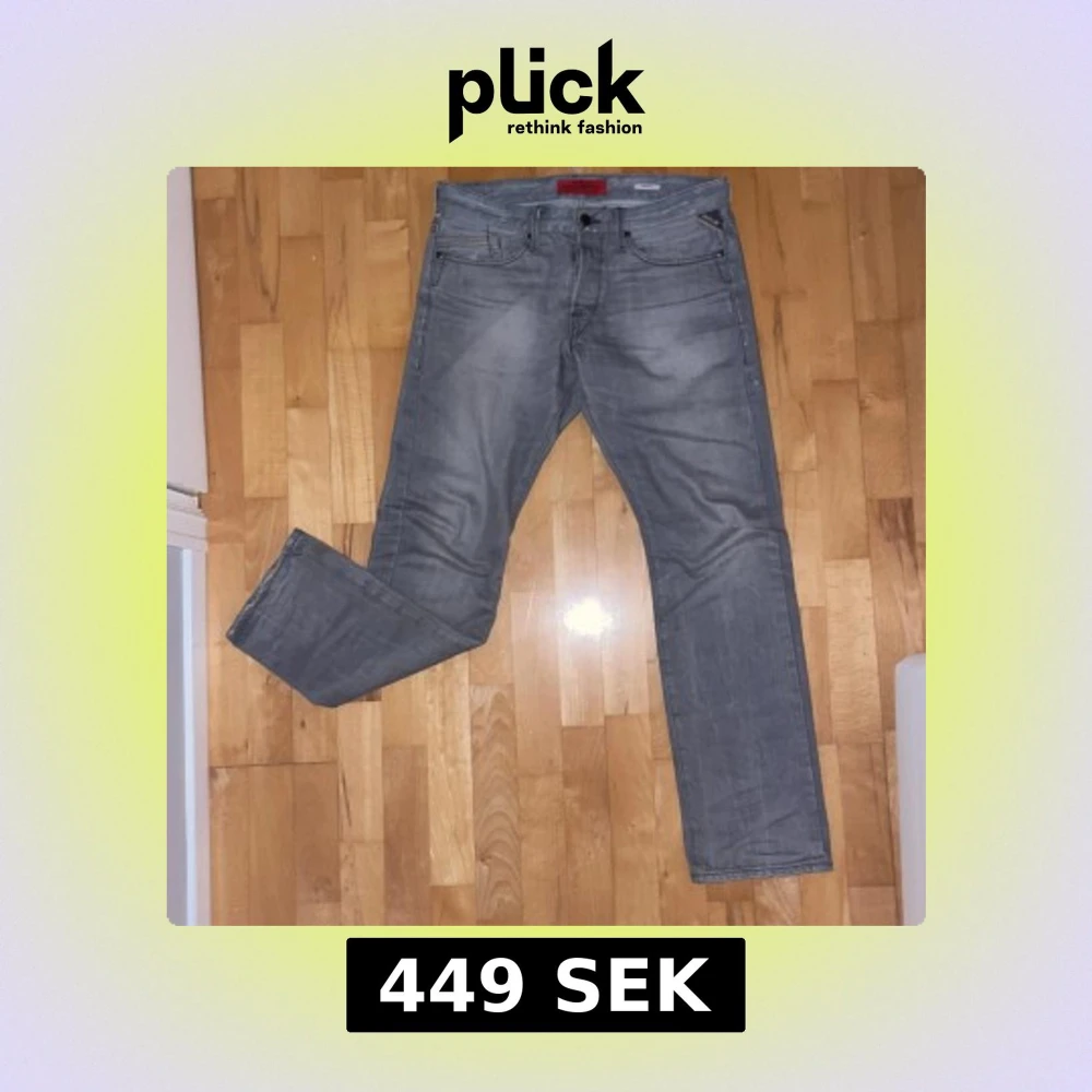 Snygga grå jeans från Replay i modellen Waitom. De har en klassisk femficksdesign och en knappgylf. Perfekta för en avslappnad stil med en modern touch. w32 l32