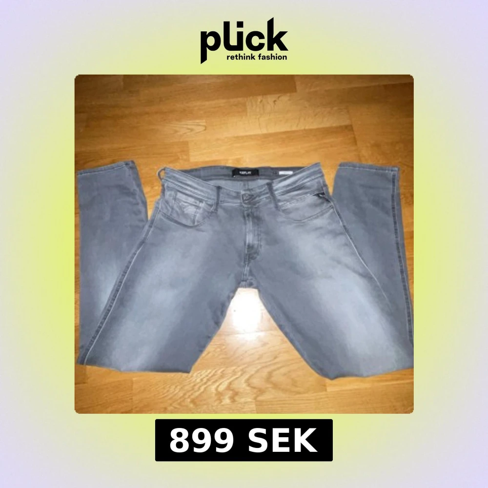 Snygga grå jeans från Replay. Modellen är anbass , jeansen är använda 5 gånger. Stilrena och passar bra till en mörkblå tröja.