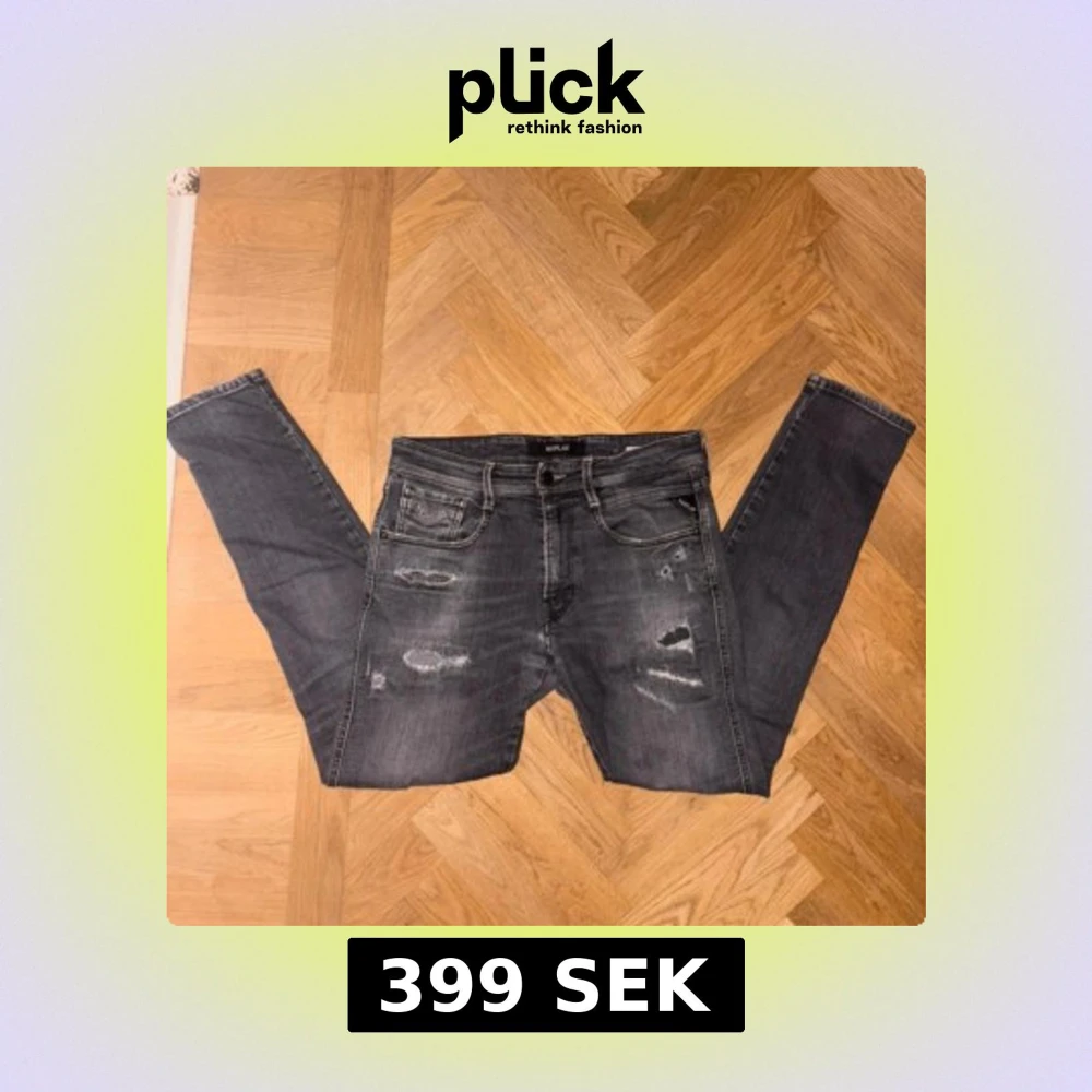 Snygga grå jeans från Replay med slitna detaljer. Anbass modell