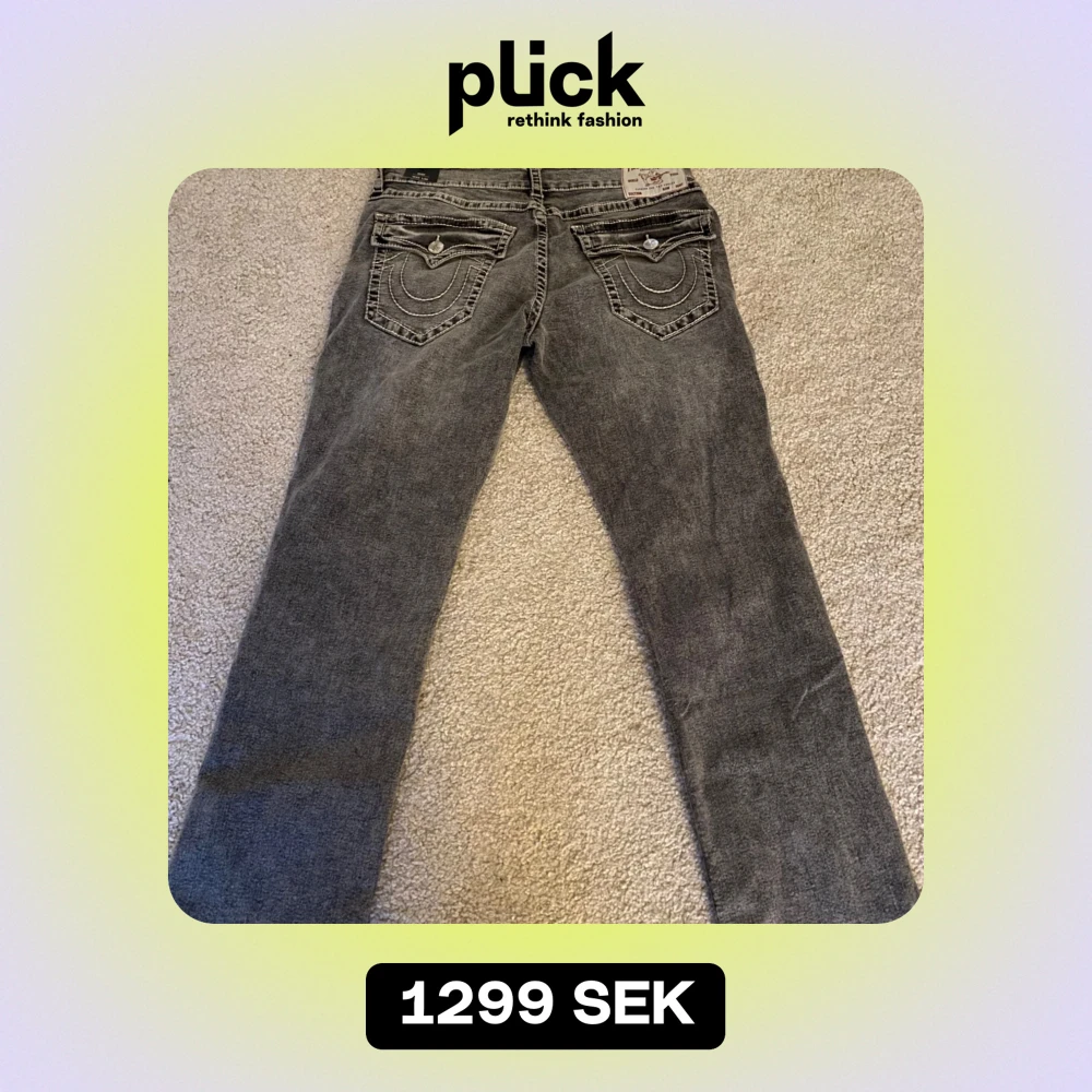 HELT NYA Säljer ett par grå jeans från True Religion i modellen Ricky Big T Flap. De har en straight fit och är i en snygg grå tvätt med slitna detaljer. Bakfickorna har coola sömmar och knappar. Perfekta för en avslappnad stil!
